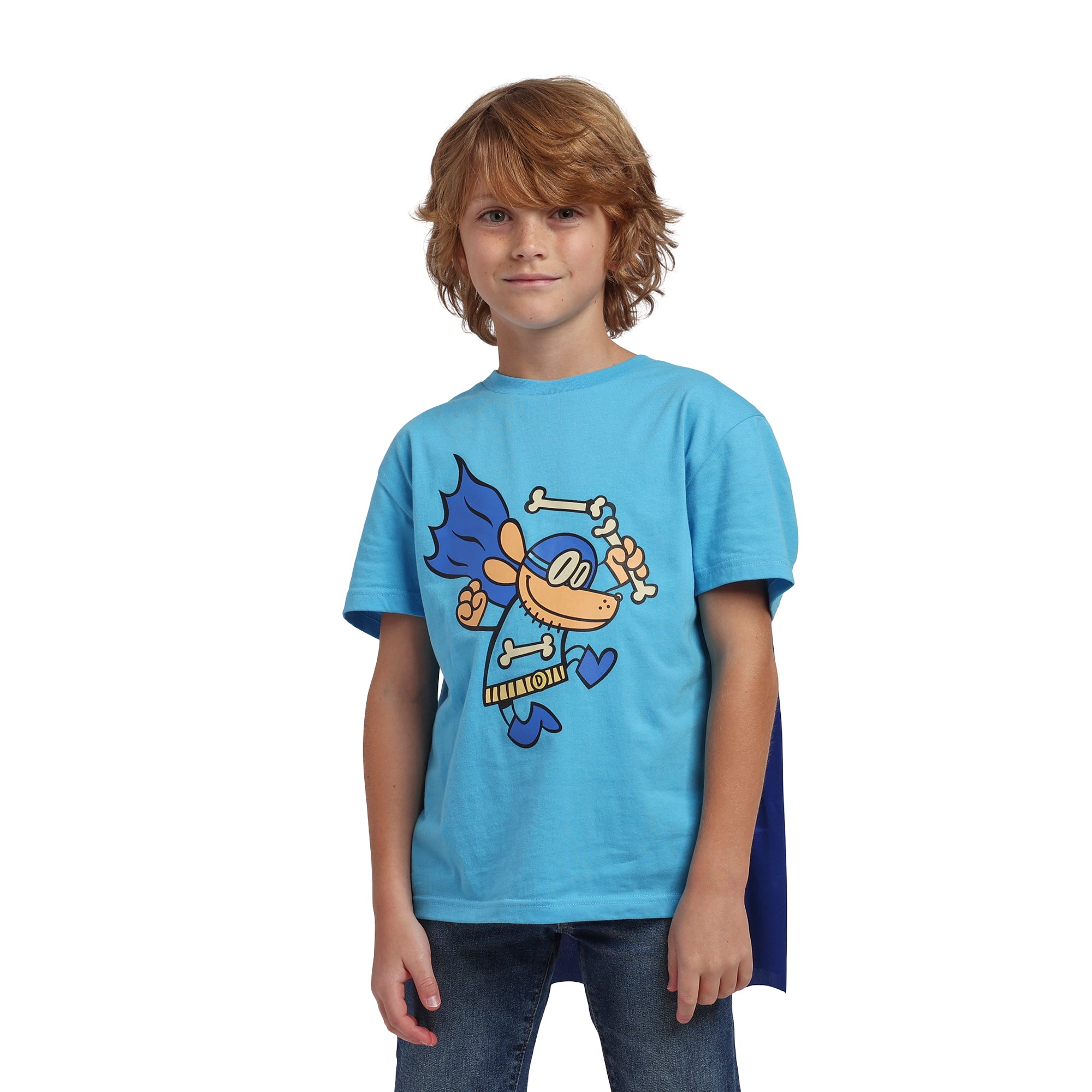 Dog Man Superhero Costume Boy's Blue Crew Neck Short Sleeve T-shirt With Detachable Cape