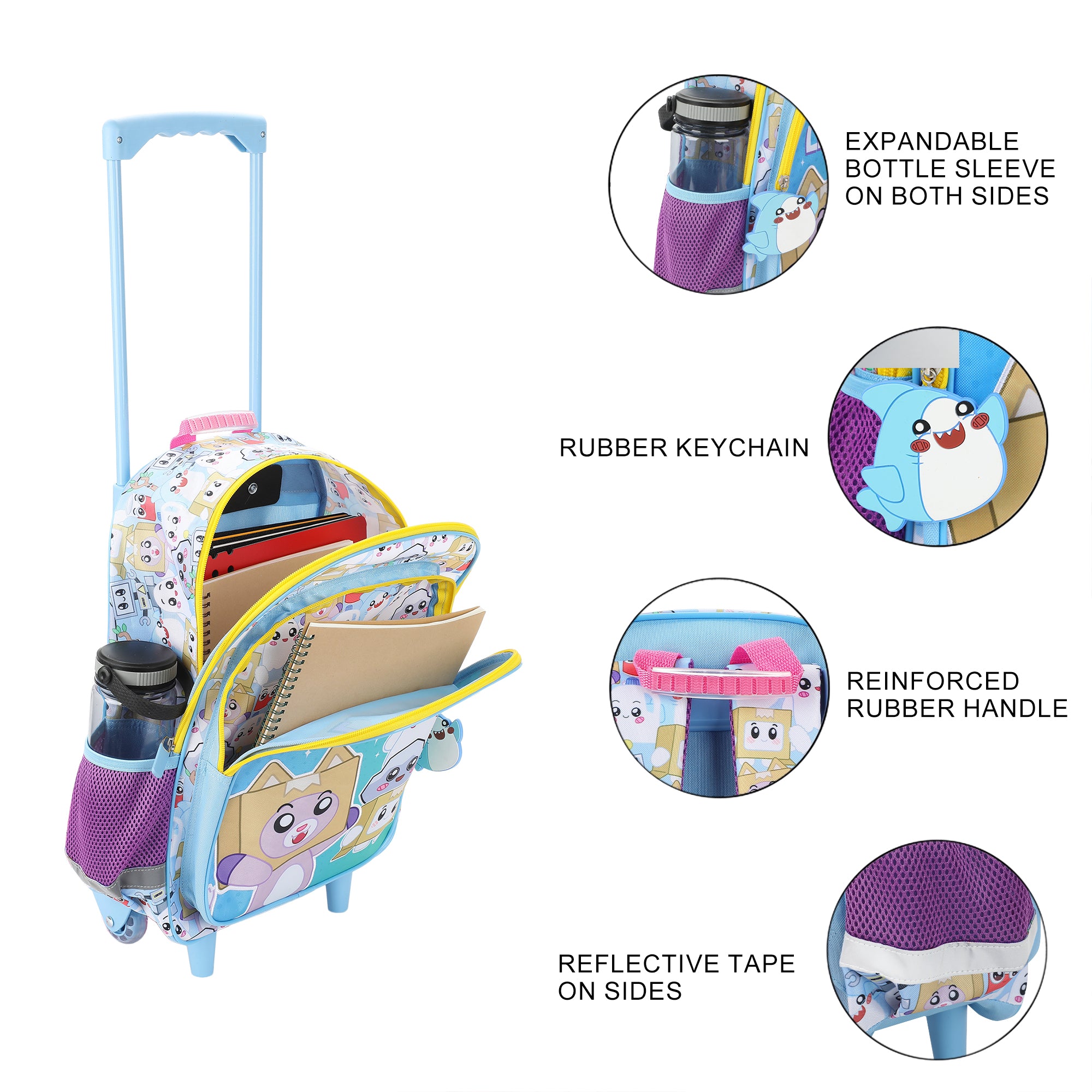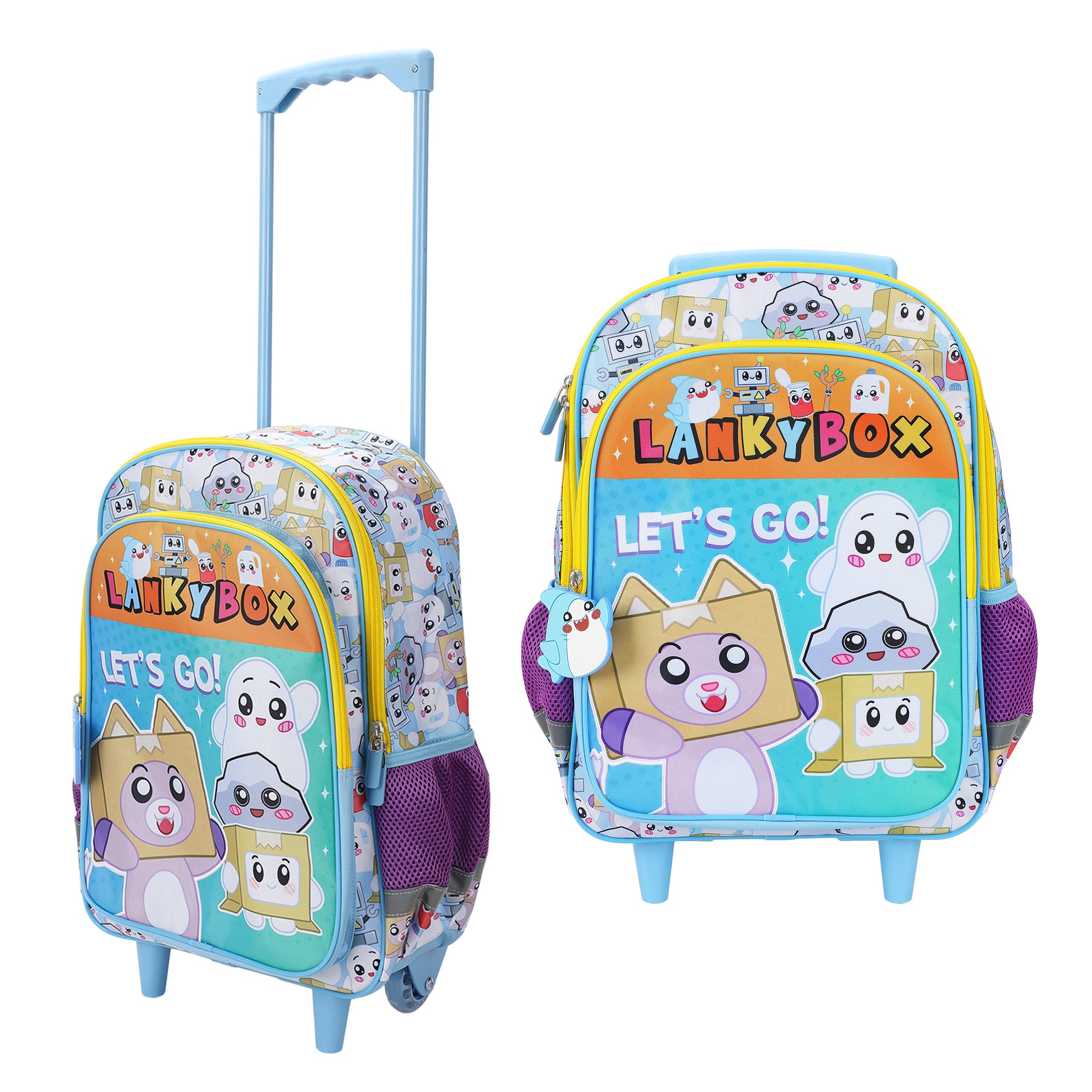Lanky Box "Let's Go!" 16" Rolling Travel Backpack With Wheels And A Keychain