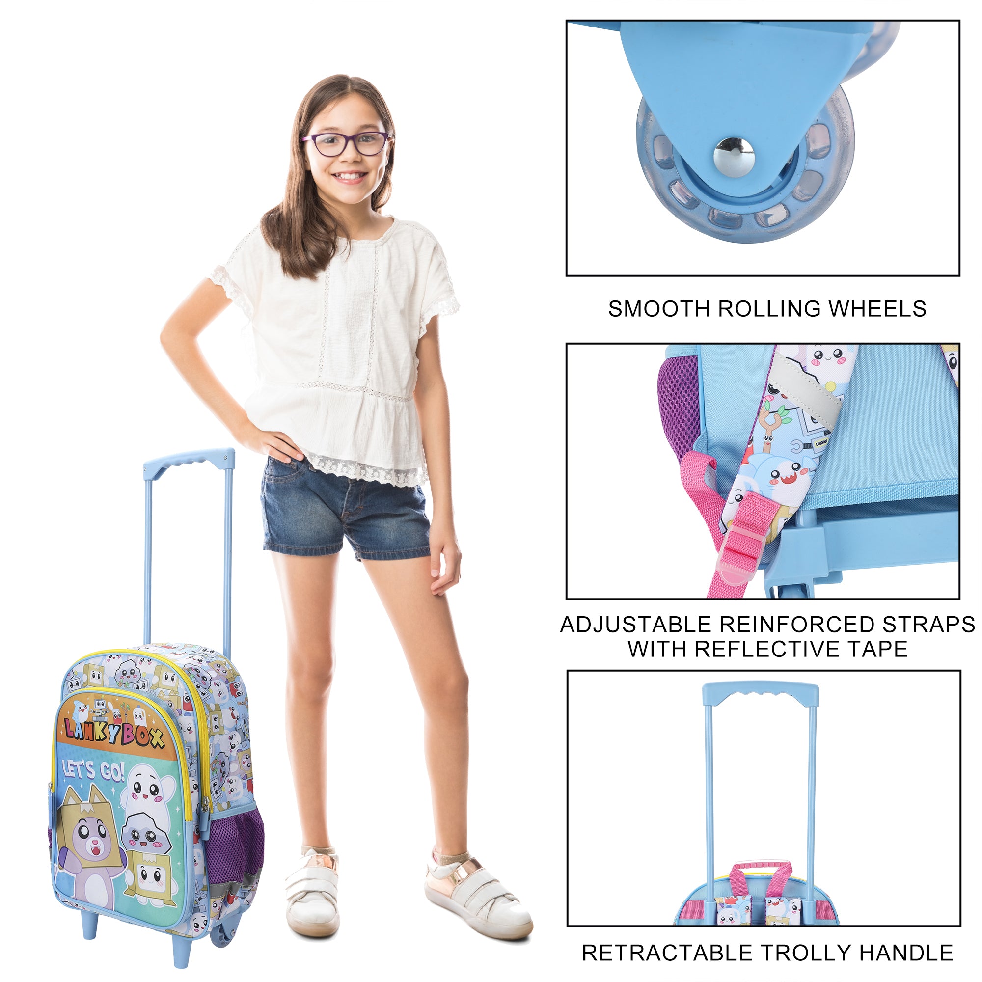 - Custom Design: Perfect for Lanky Box fans, this backpack has been custom designed with a big, colorful graphic of your favorite Lanky Box characters and "Let's Go!"