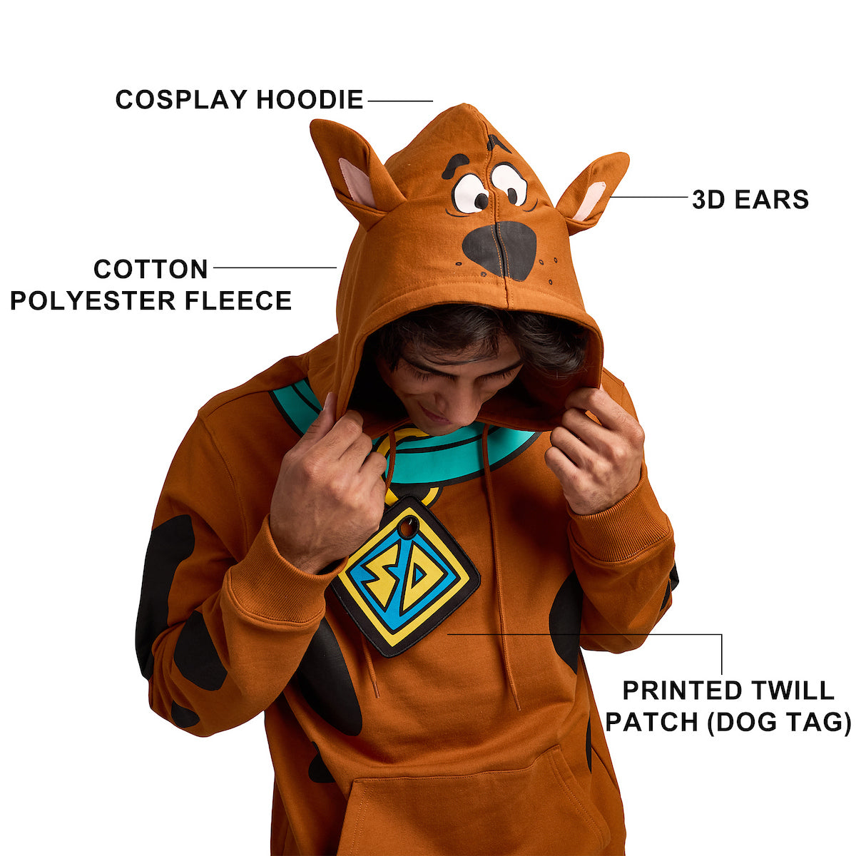 - Character Design: Become an honorary member of Mystery Inc. with this character hoodie that has been thoughtfully designed to look like everyones favorite mystery-solving canine, complete with black spots, Scooby's iconic collar, and 3D ears!