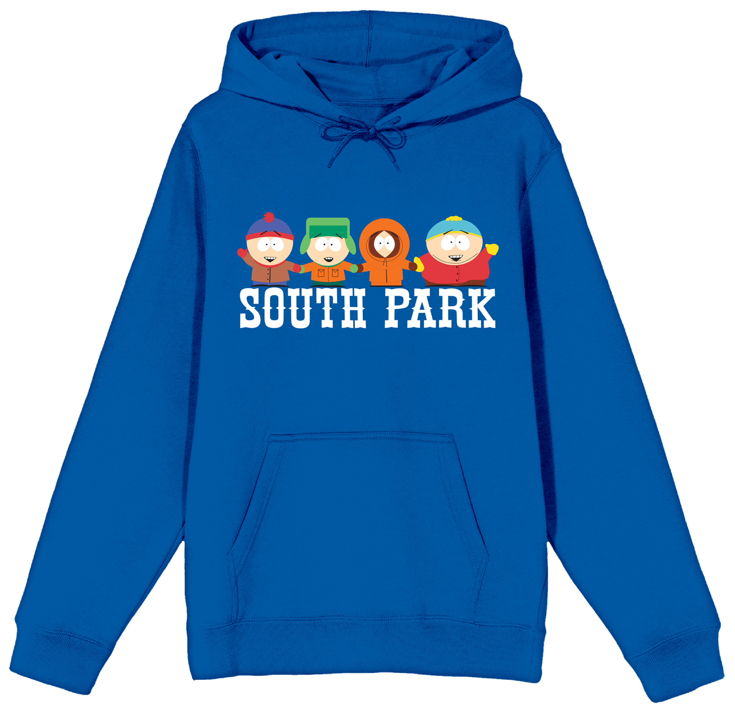 - CUSTOM DESIGNED South Park sweatshirt features an image of all your favorite characters that has been professionally printed against a royal blue background to ensure long-lasting print quality
