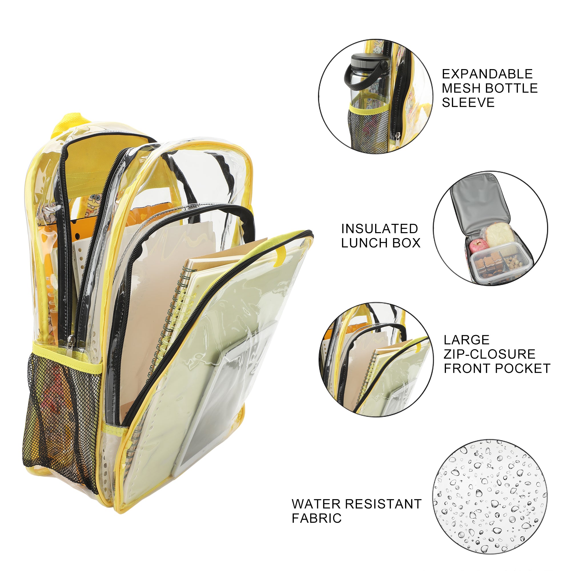 Spongebob Squarepants Character Print 16" Clear Backpack & Lunch Kit Value Set