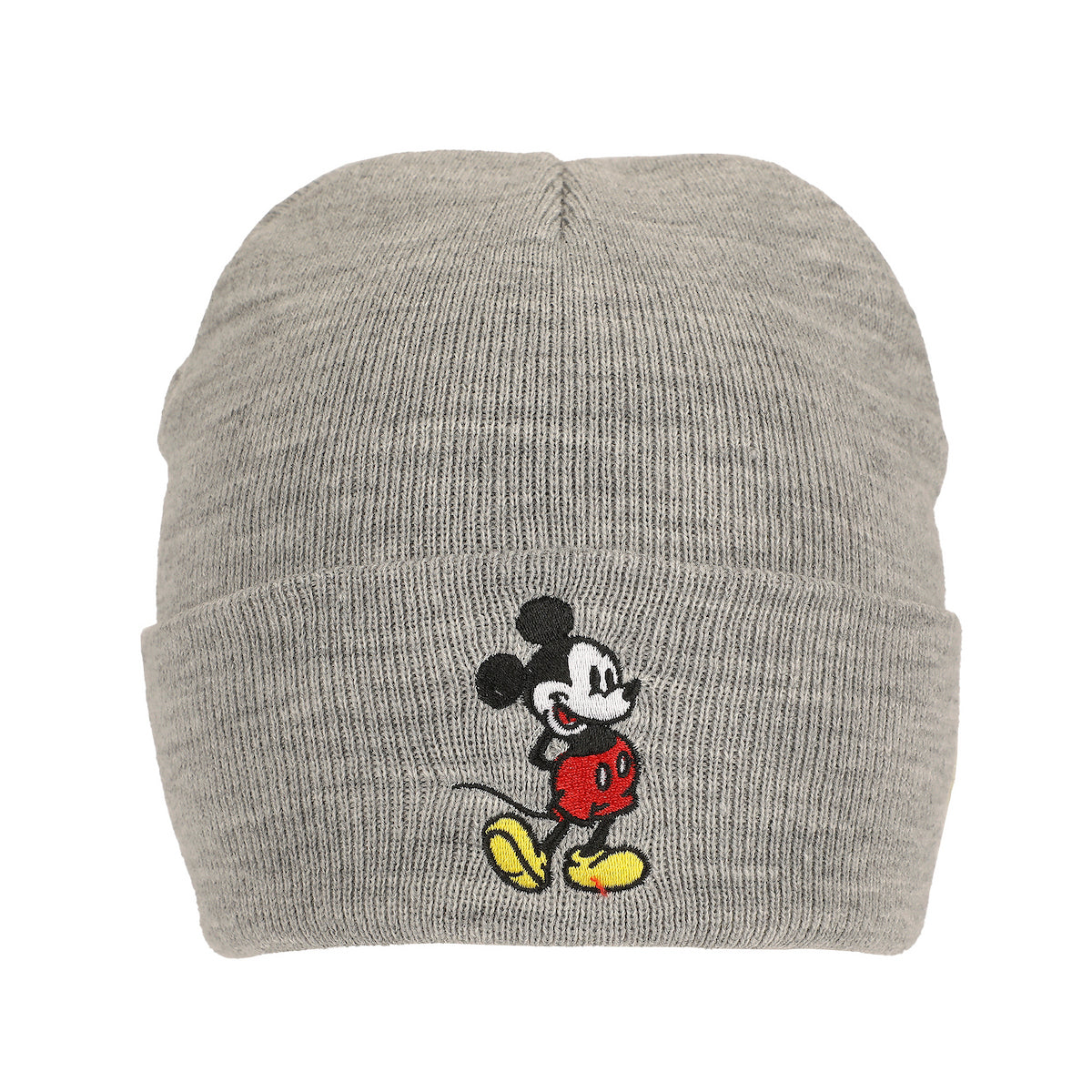 Mickey Mouse Mickey Embroidery Heather Gray Acrylic Knit Standard Cuff Beanie