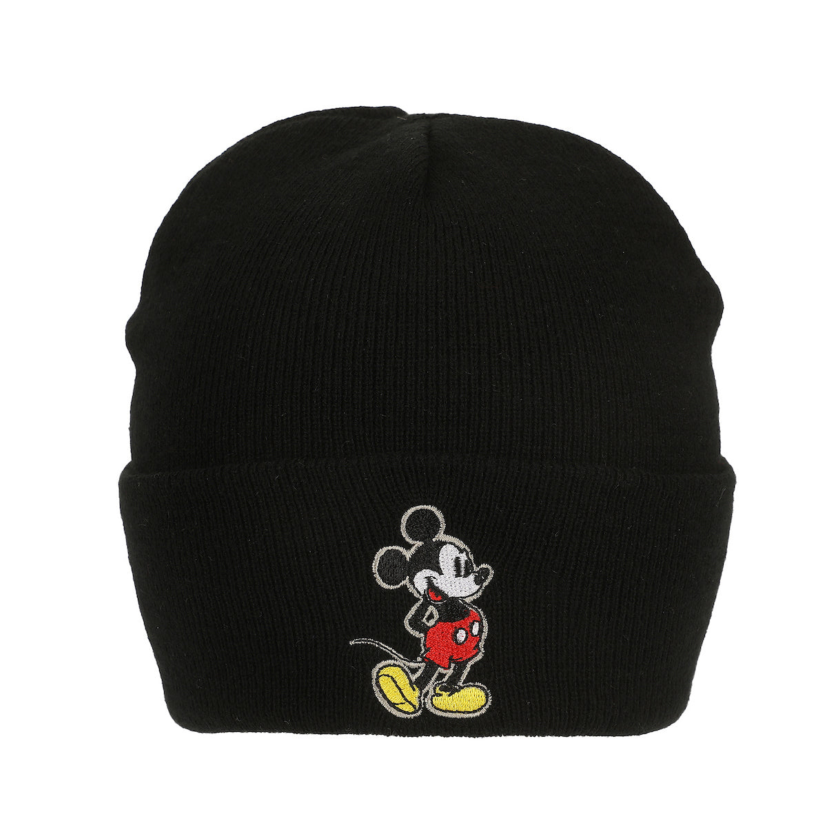 Mickey Mouse Mickey Embroidery Black Acrylic Knit Standard Cuff Beanie