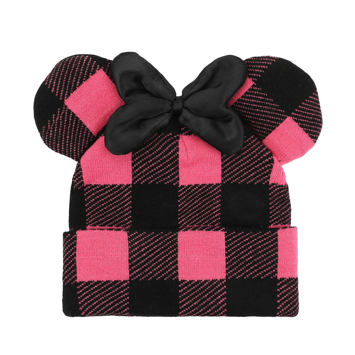 Disney Minnie Mouse Ears Pink Plaid Cuff Beanie