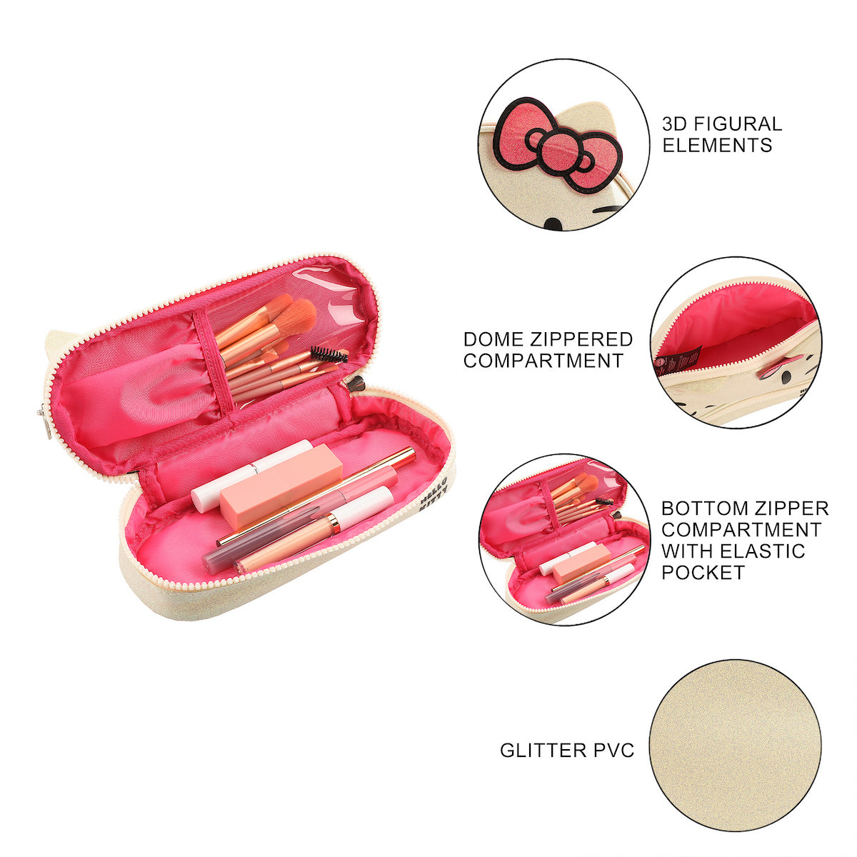 Hello Kitty Character Face White Glitter 6" Cosmetic Pouch
