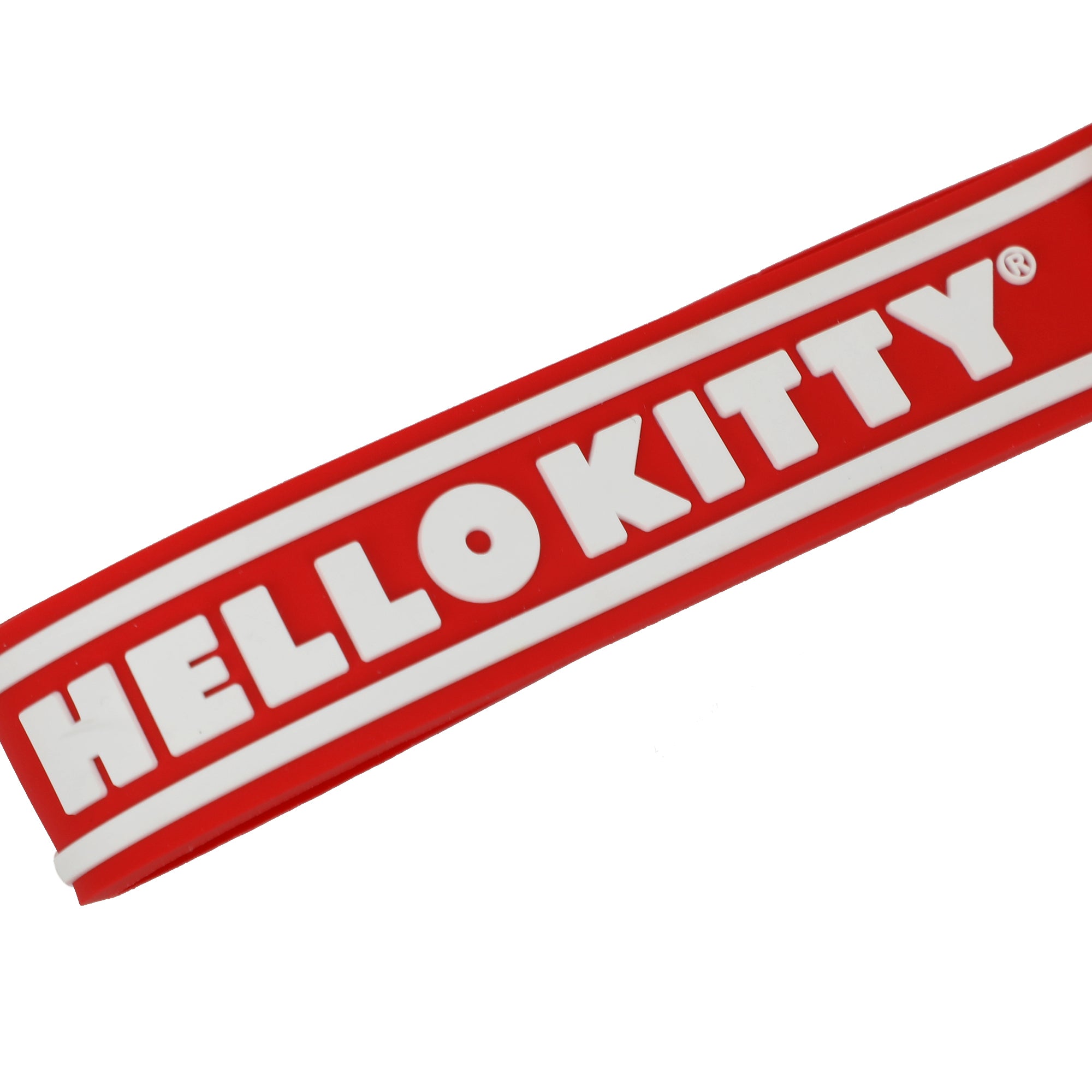 - Custom Design: Features a liquid-filled strawberry with a molded PVC Hello Kitty and a red wristlet strap for a playful touch