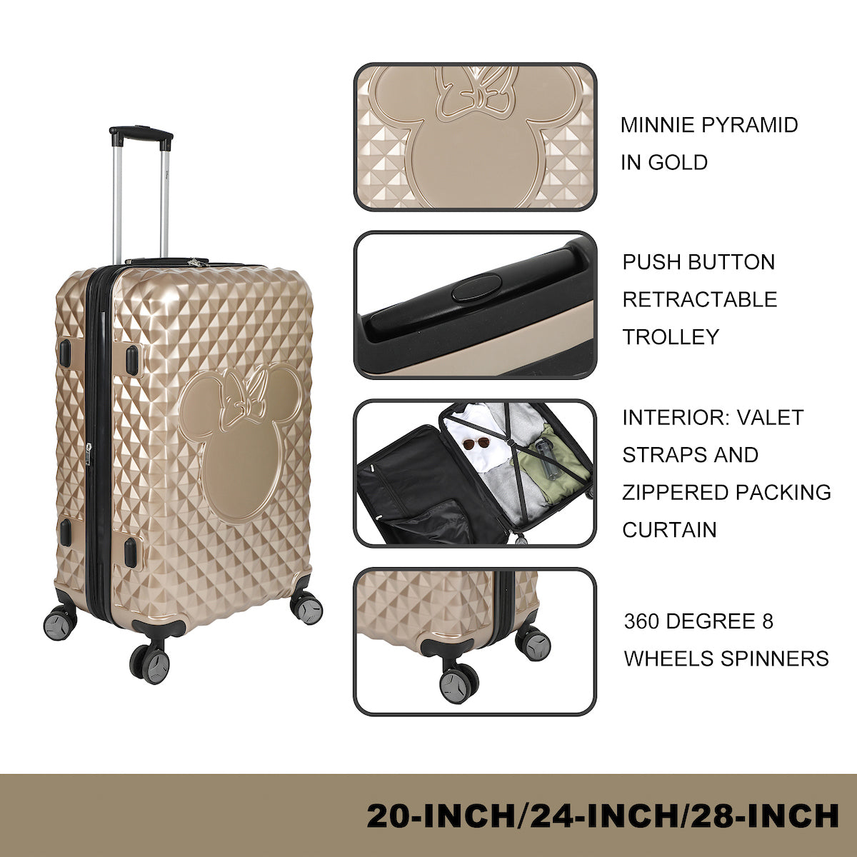 Minnie Mouse Classic Peek-a-Boo Minnie Pink Adult 24" Rolling Luggage