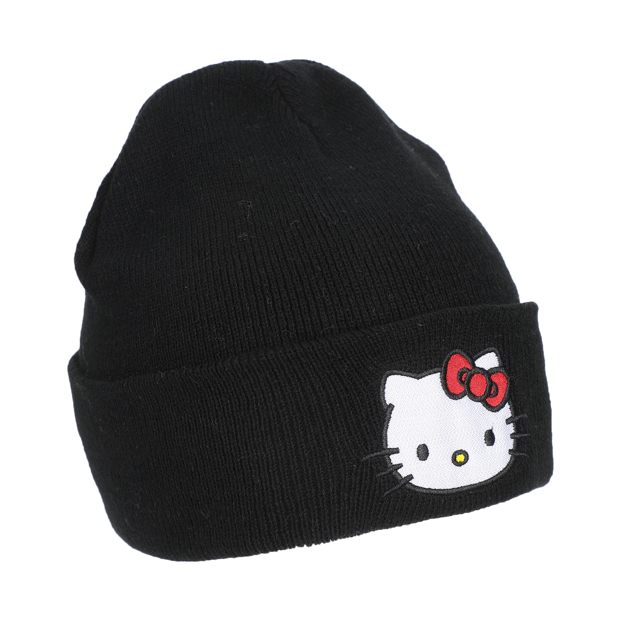 Hello Kitty Embroidered Character On Black Cuff Beanie