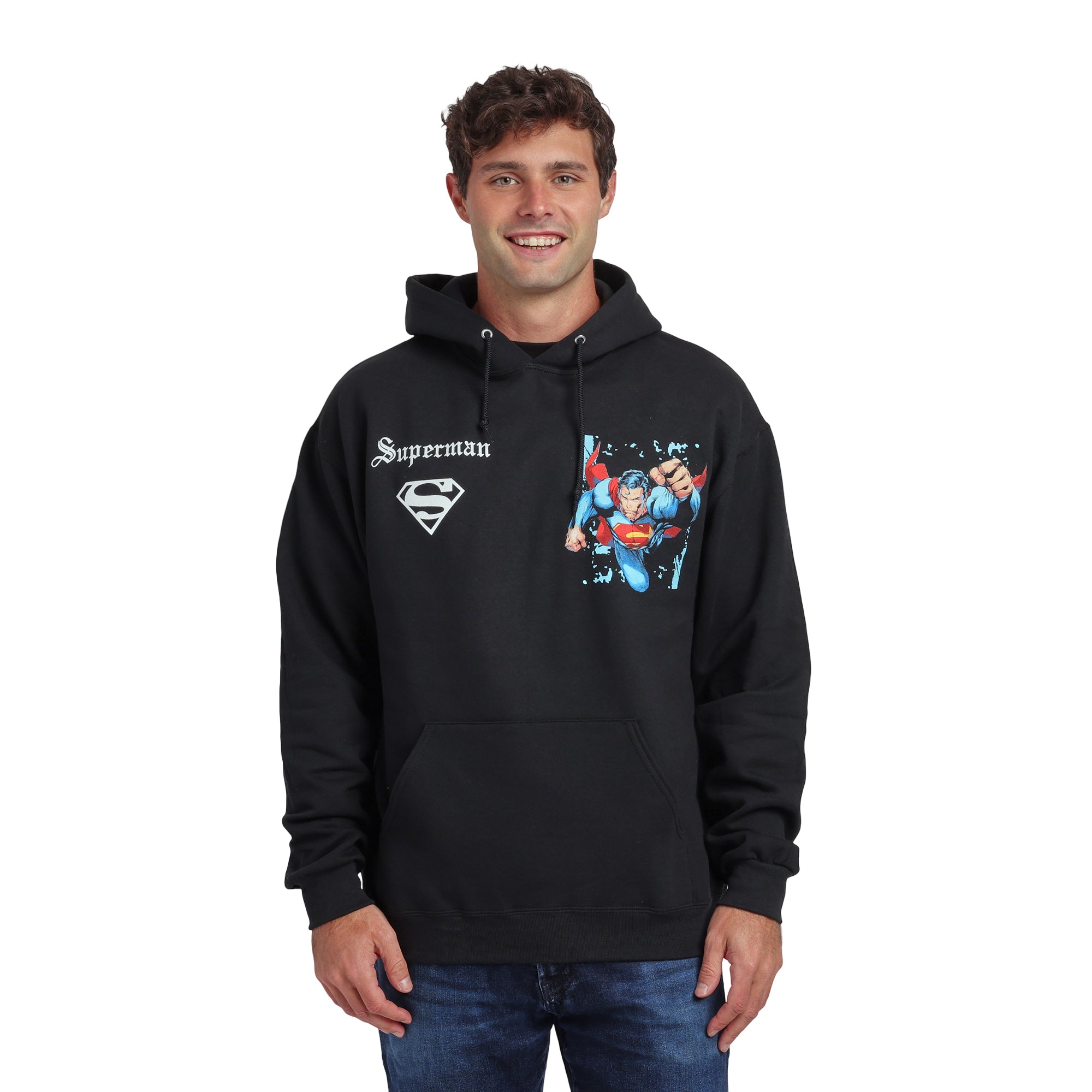 Superman Back Print Oversized Graphic Adult Black Long Sleeve Hoodie