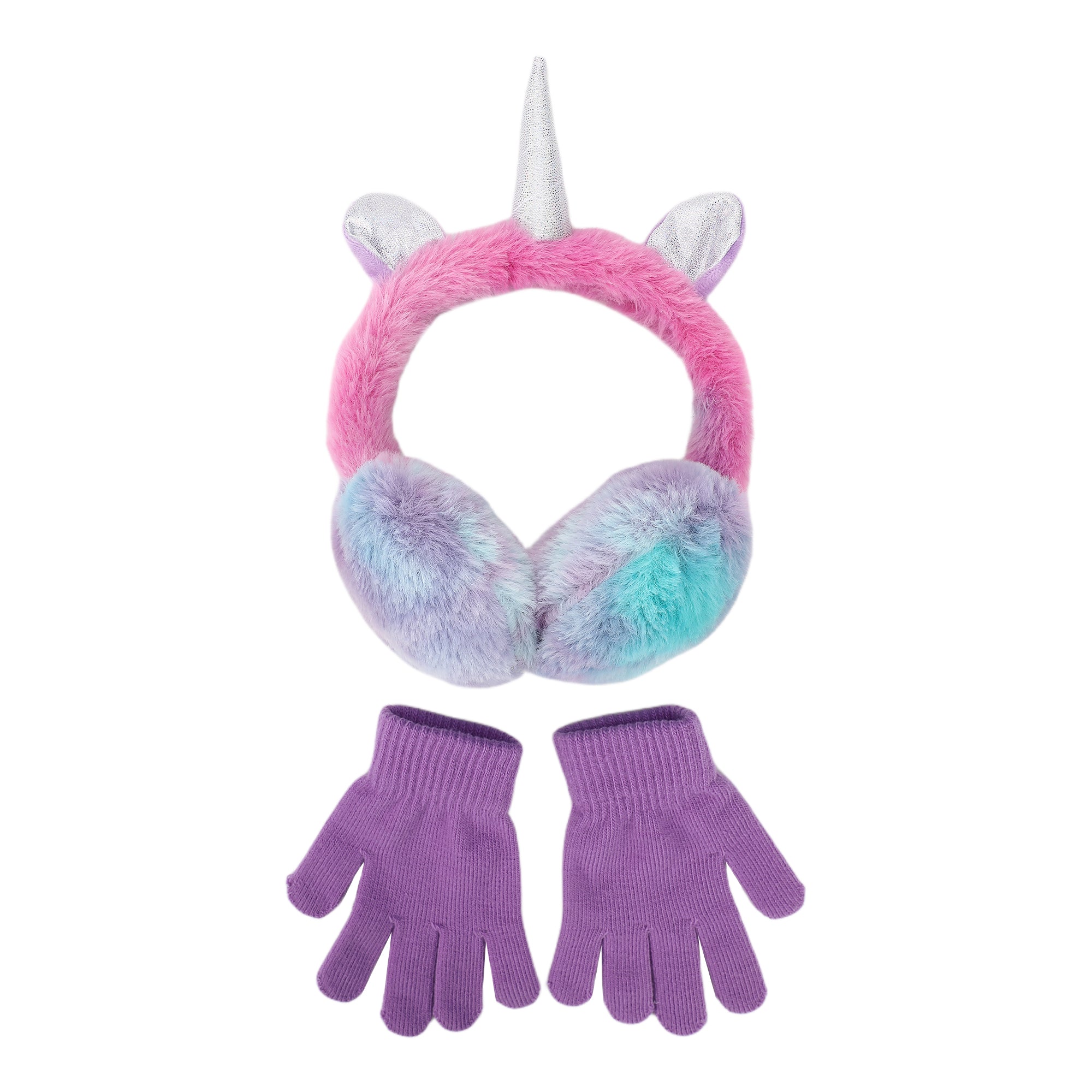 Unicorn 2-Piece Youth Tie-Dye Plush Ear Muffs & Gloves Set
