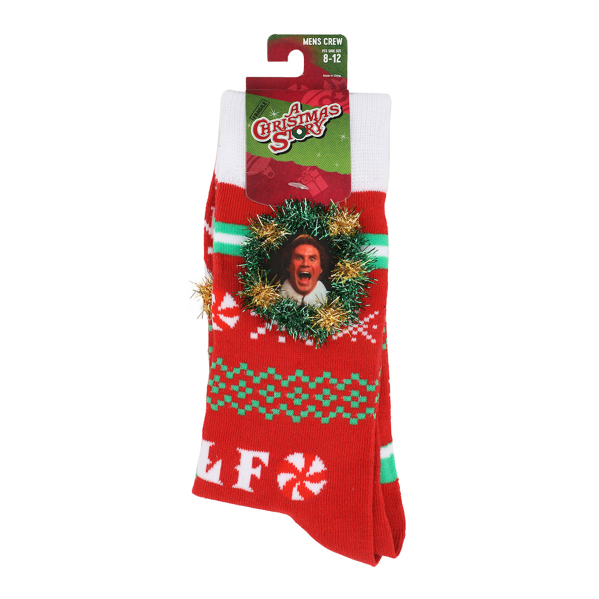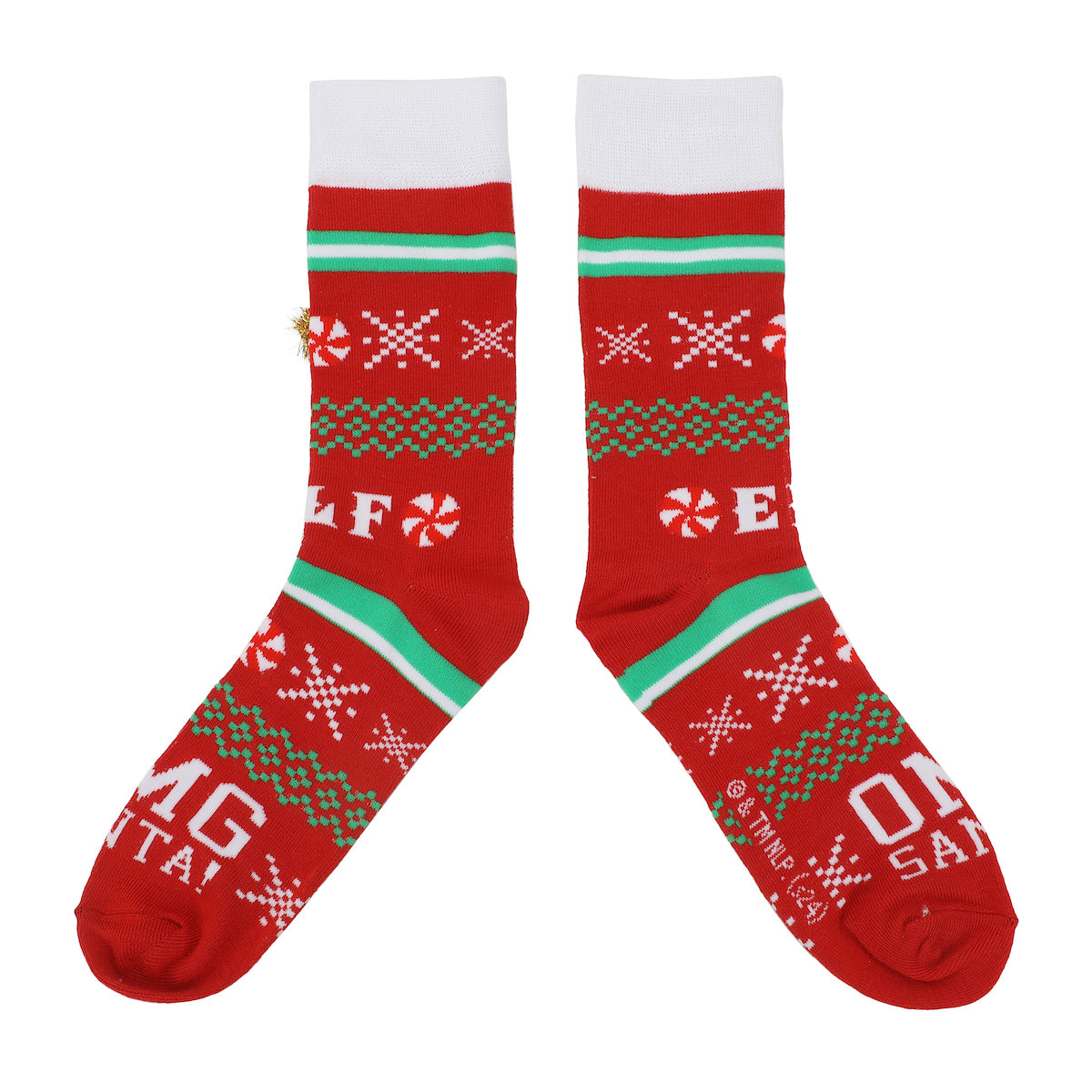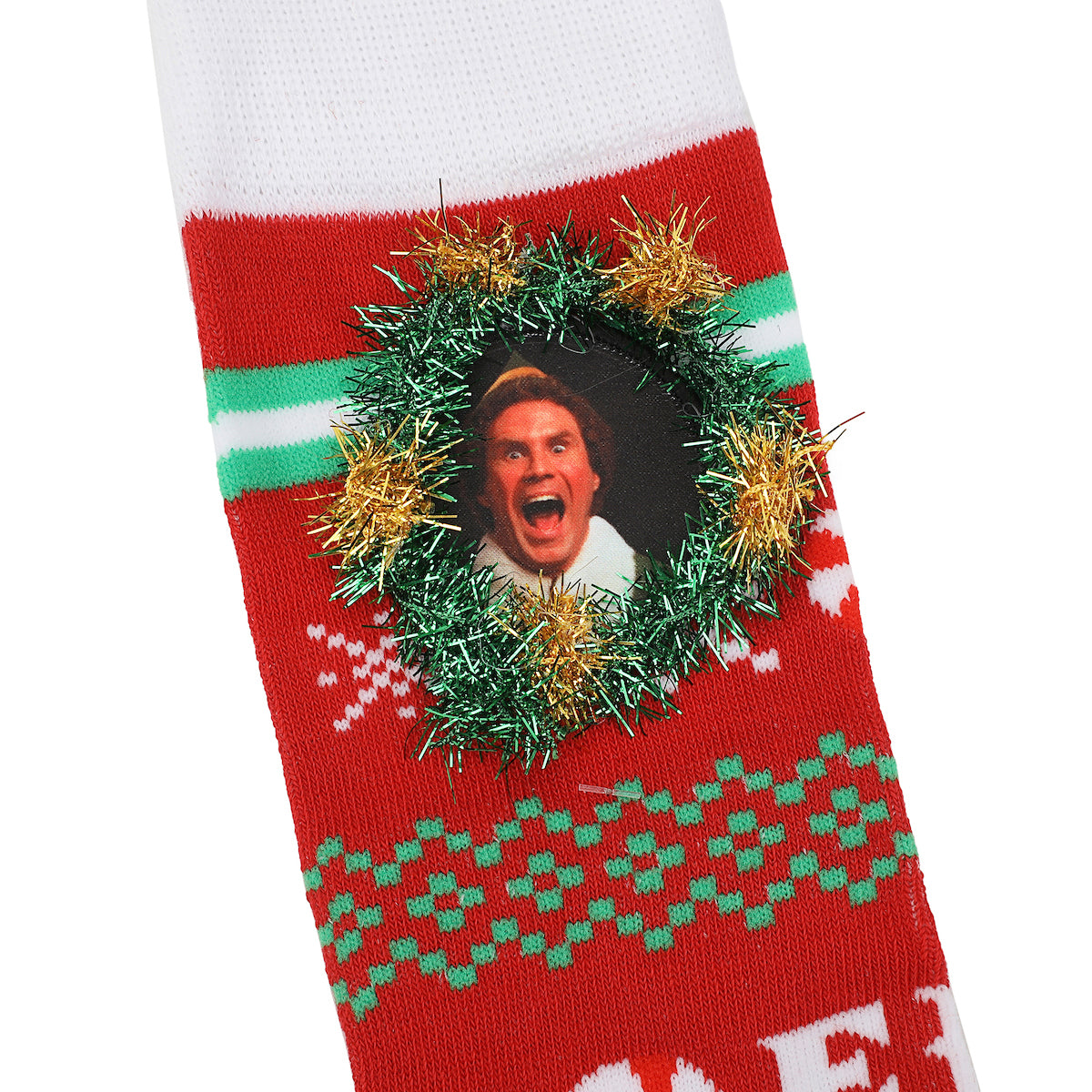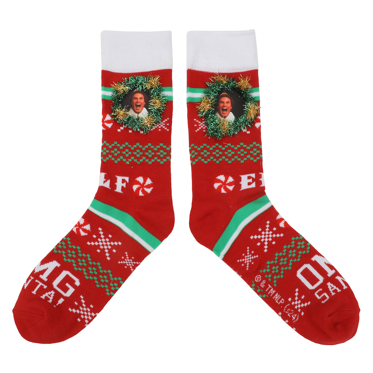 Elf OMG Santa Christmas Sweater Adult Red Casual Crew Socks With 3D Tinsel Wreath