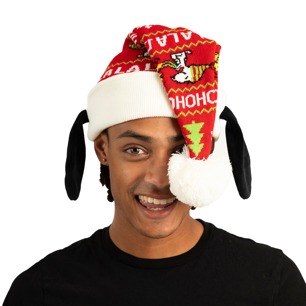 • PLAYFUL SNOOPY DESIGN: The hat features a delightful pattern of Snoopy and Woodstock, complete with 3D Snoopy ears that hang down—the perfect combination for all of your holiday festivities.