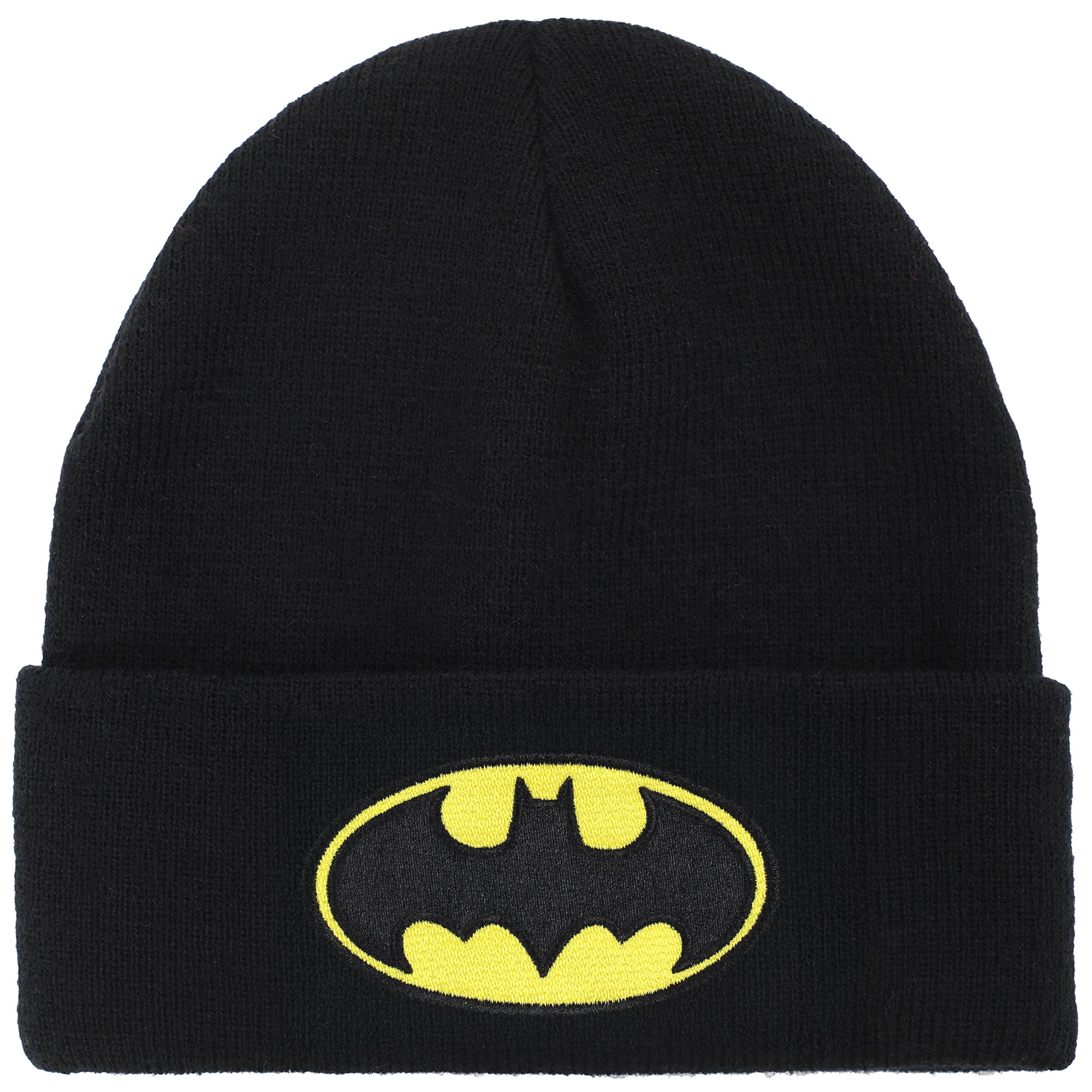 - Custom Design: Features Batman logo embroidery black acrylic knit standard cuff beanie inspired details for standout style