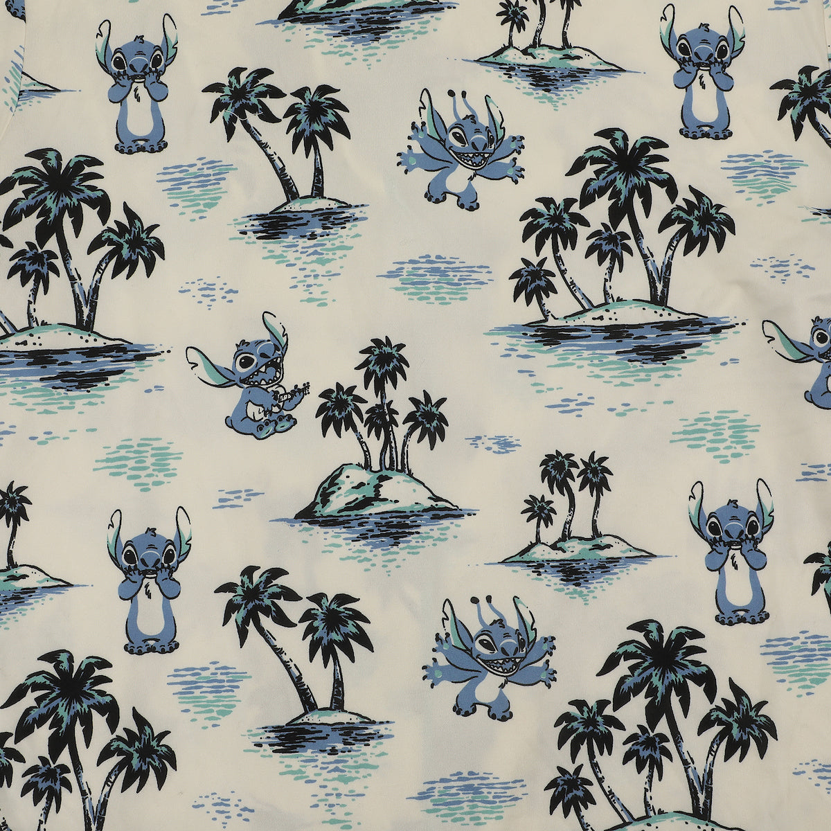 - 2-Piece Pajama Set: This two-piece Lilo & Stitch pajama set includes a notch collar button-down shirt and shorts, both featuring a bold all-over print of Stitch and Hawaiian palm trees