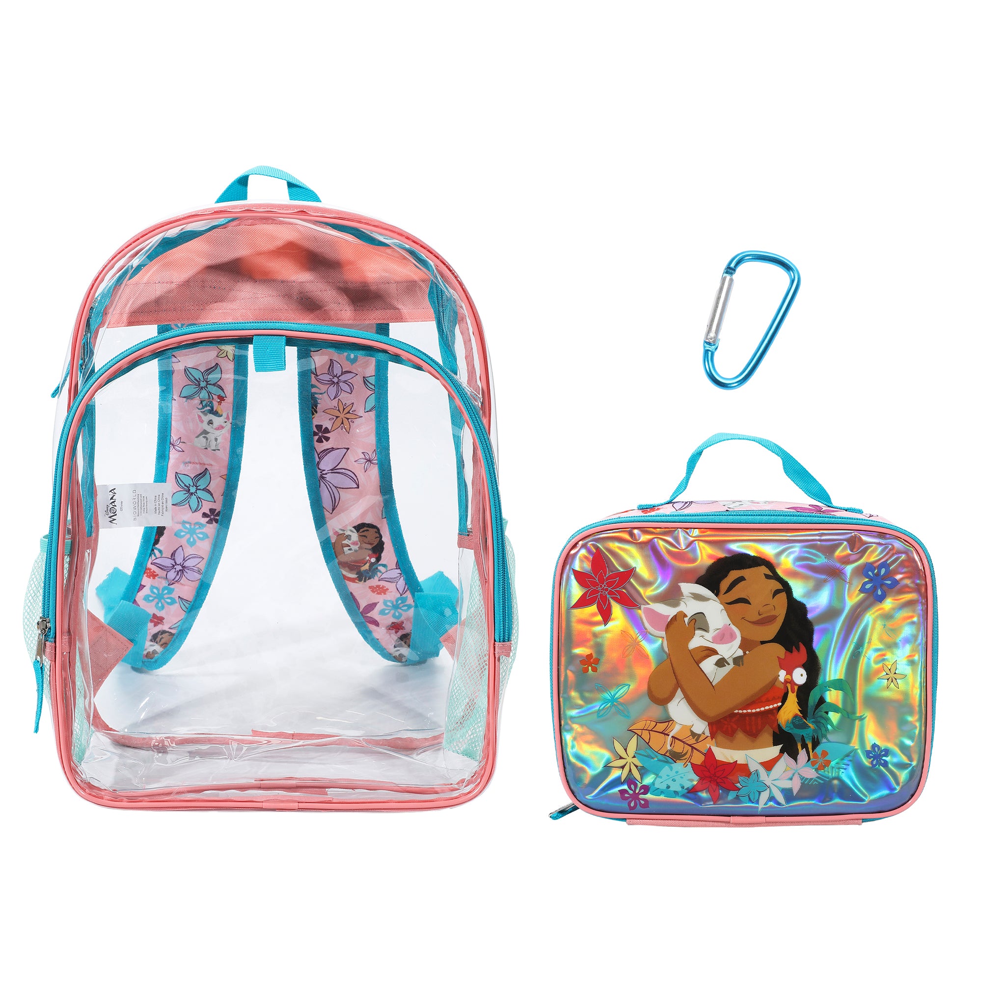 Disney Moana and Pua 2-Piece 16" Kids Clear Backpack & Lunch Box Set For School And Travel