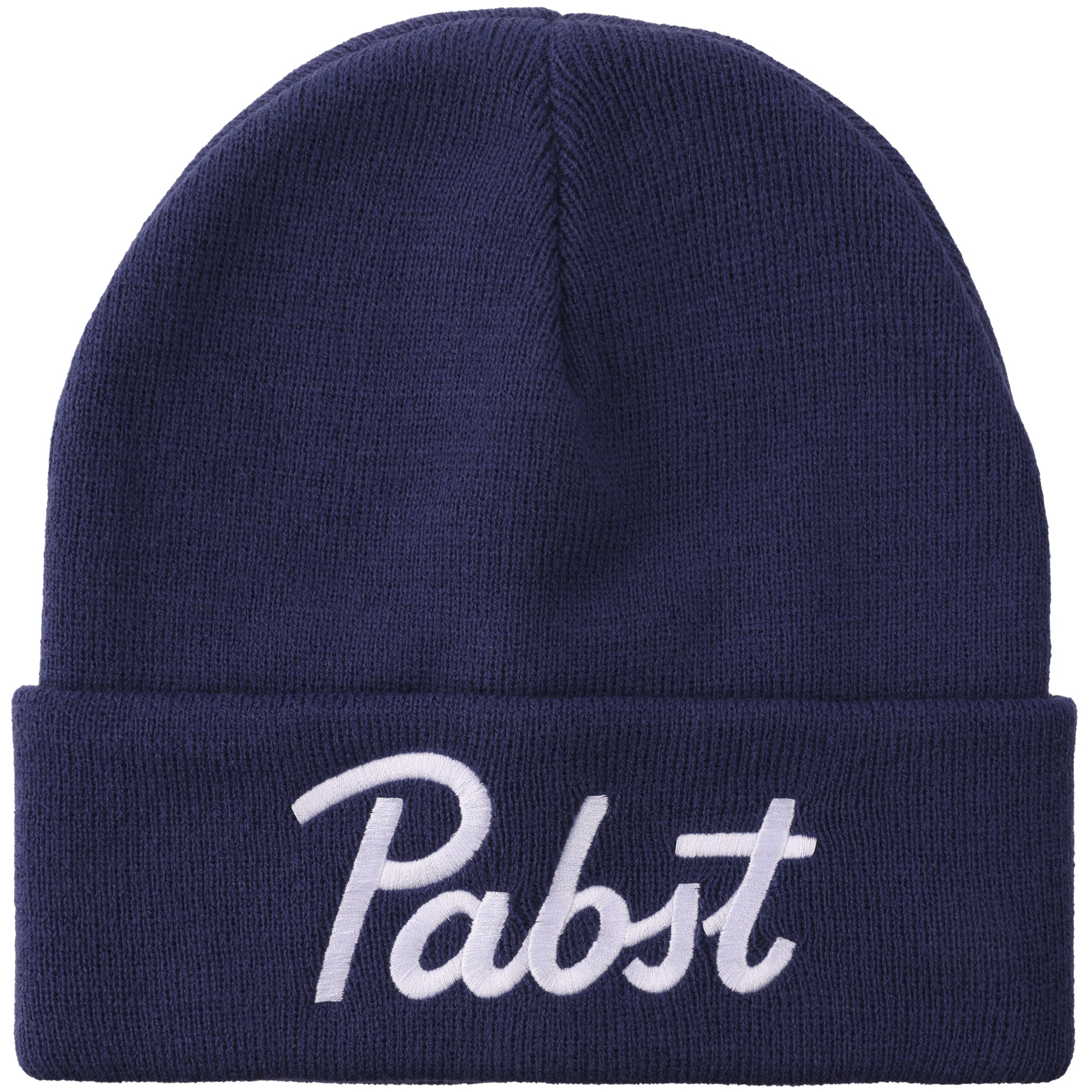 - Custom Design: Features Pabst script logo embroidery acrylic knit standard cuff beanie inspired details for standout style