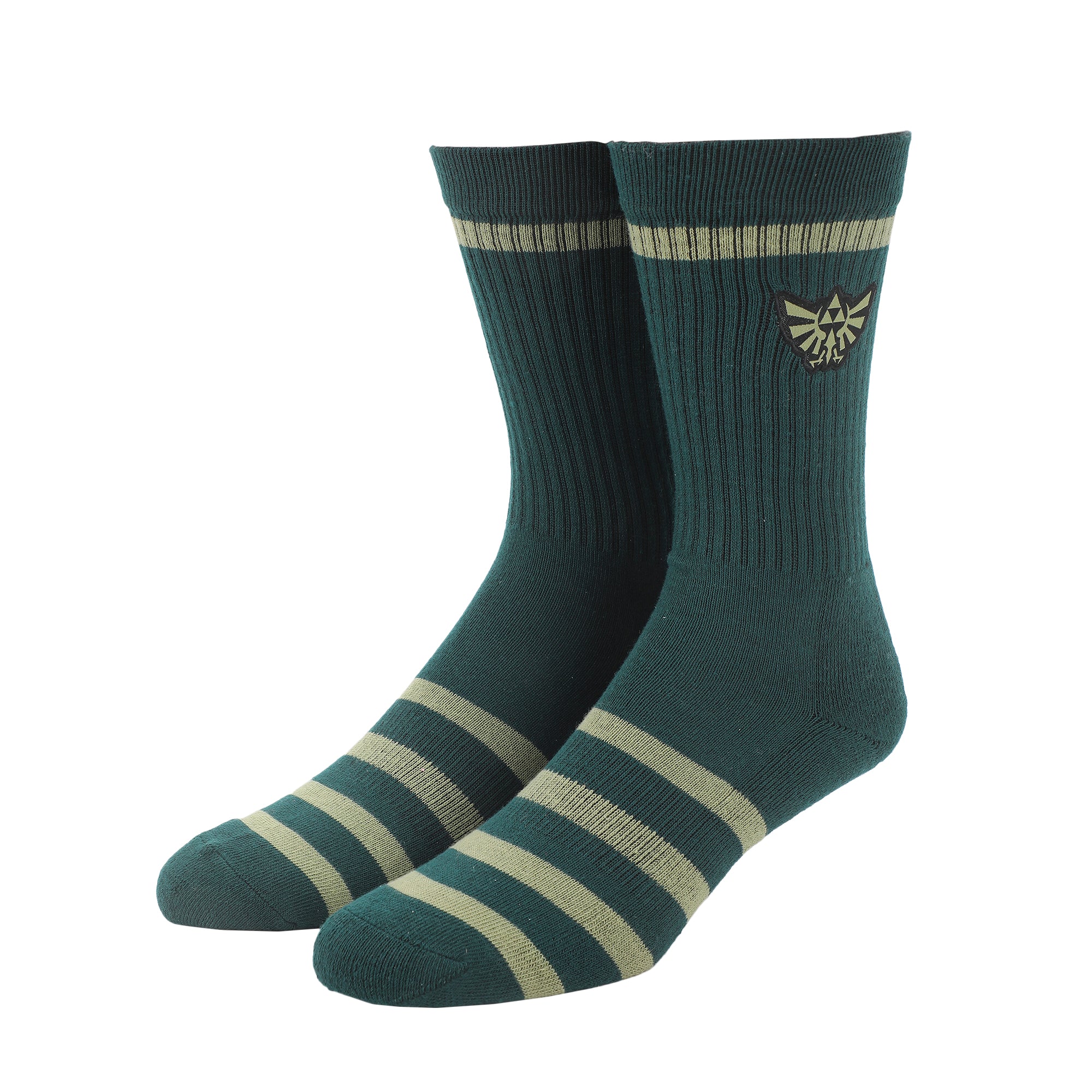 The Legend Of Zelda Embroidered Hylian Crest Men's Green Casual Crew Socks