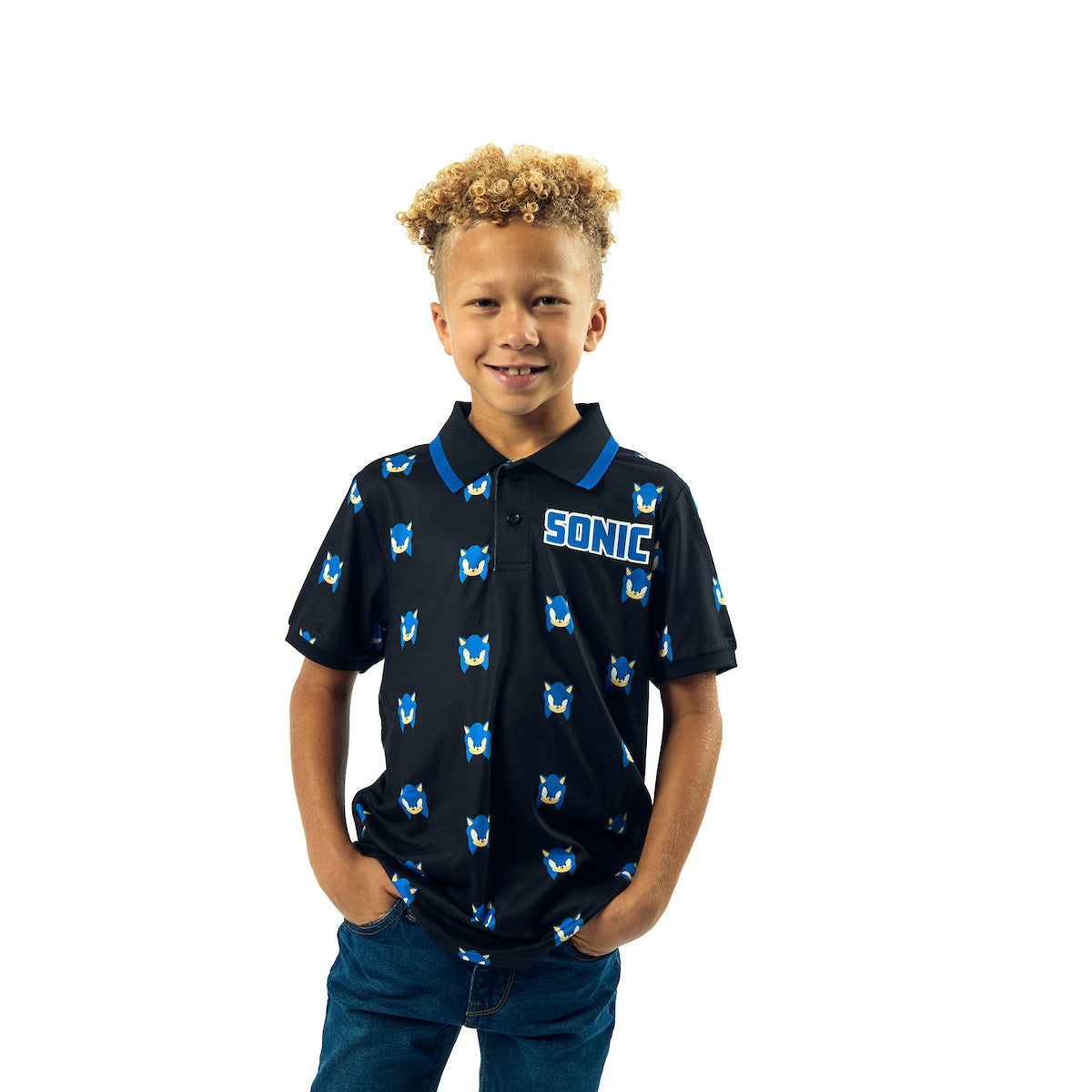 Sonic The Hedgehog Pixel Sonic Heads Short Sleeve Boy's Navy Polo Shirt