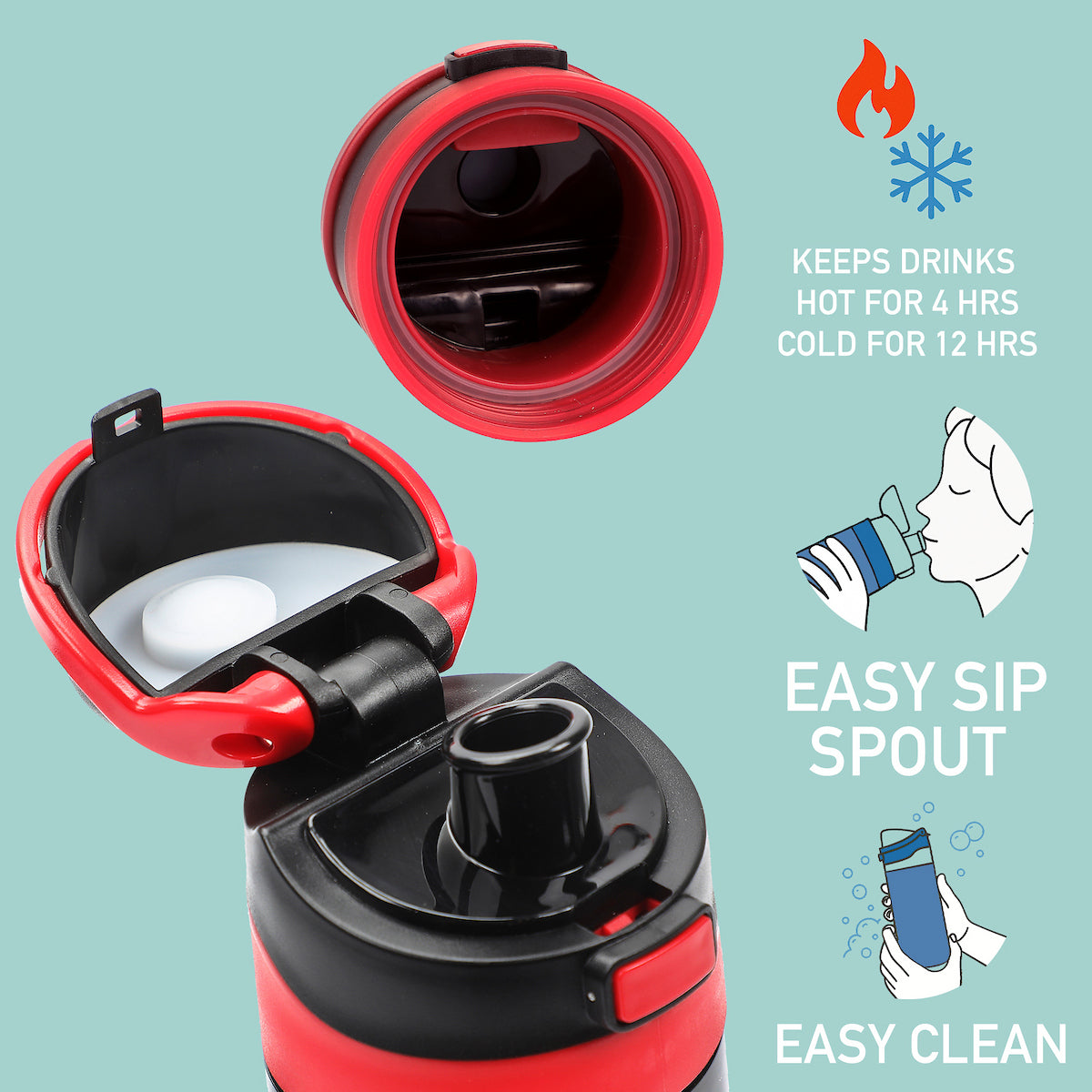 • Flip-Top: Includes a secure flip-top lid for easy, spill-resistant sipping