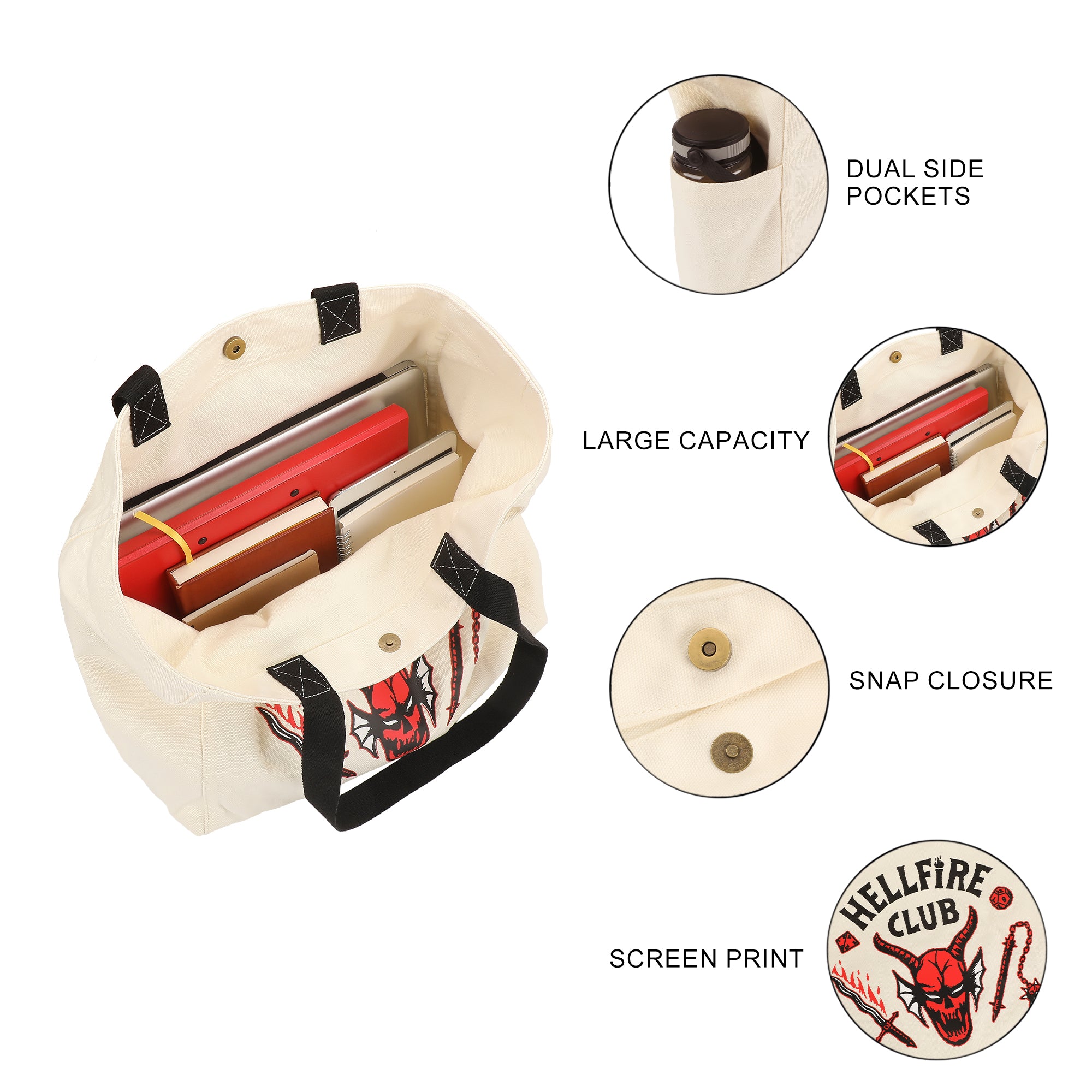 Stranger Things Hellfire Club 15.5-Inch Adult Canvas Tote Bag