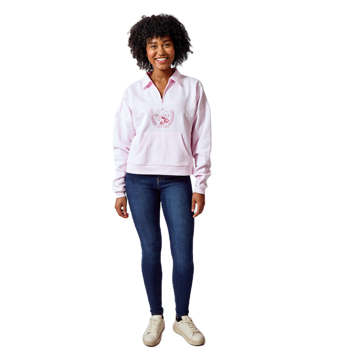 Hello Kitty Embroidered Character Art Women's Cradle Pink Long Sleeve Quarter Zip Sweatshirt