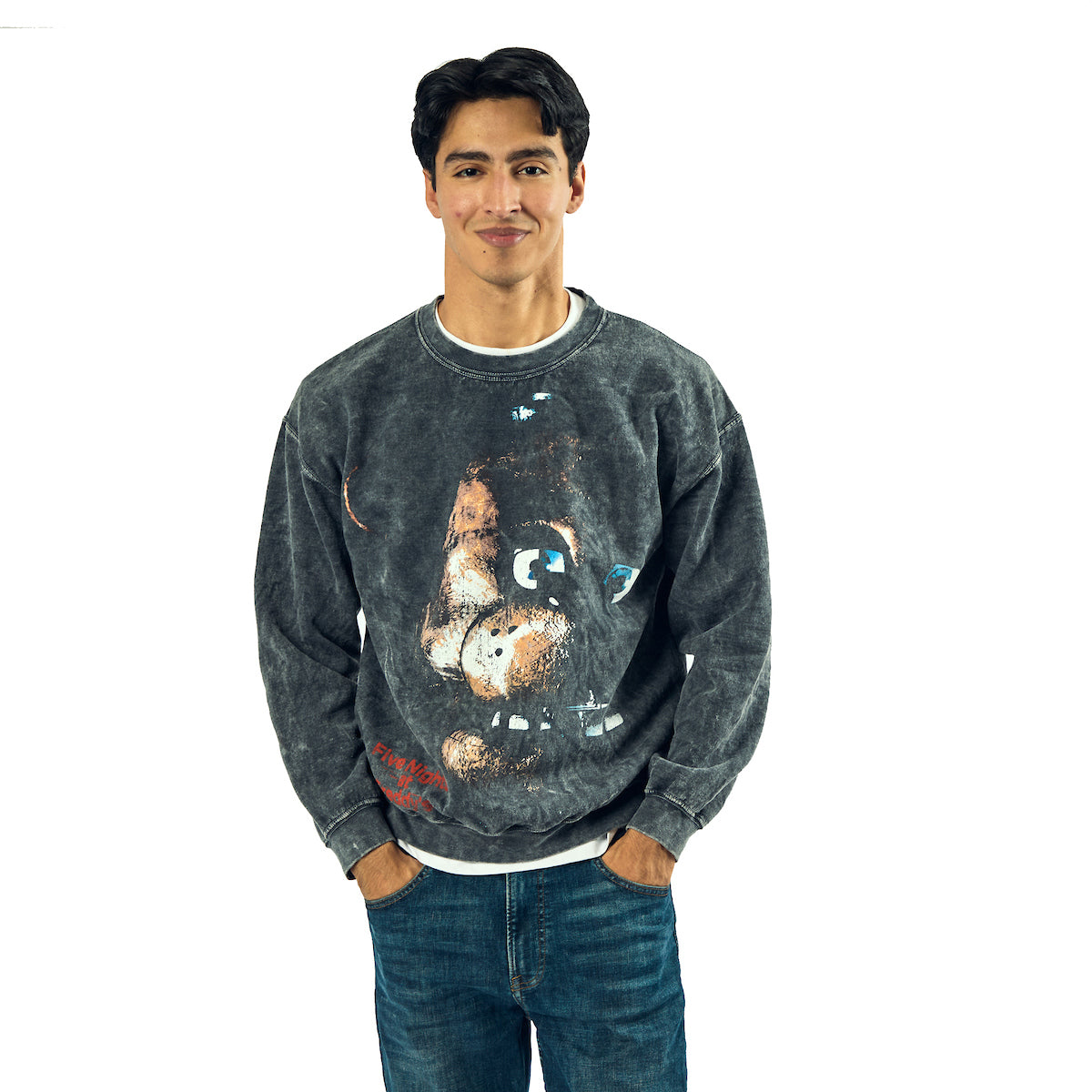 Five Nights At Freddy's Distressed Freddy Face In Shadows Adult UNisex Mineral Washed Crew Neck Long Sleeve Sweatshirt