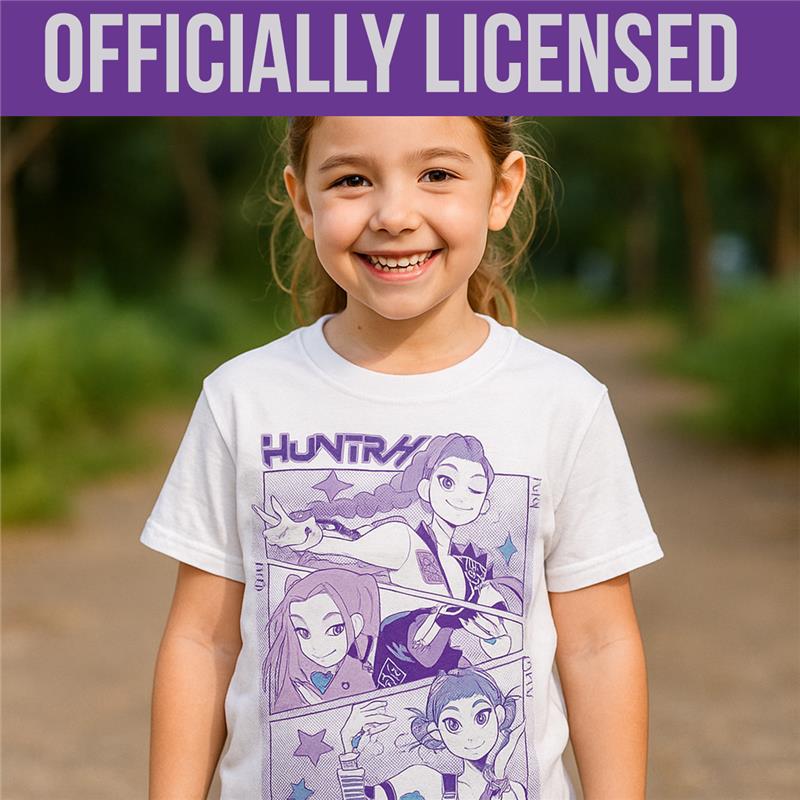 KPop Demon Hunters Panel Art Huntrix Youth White Crew Neck Short Sleeve T-shirt