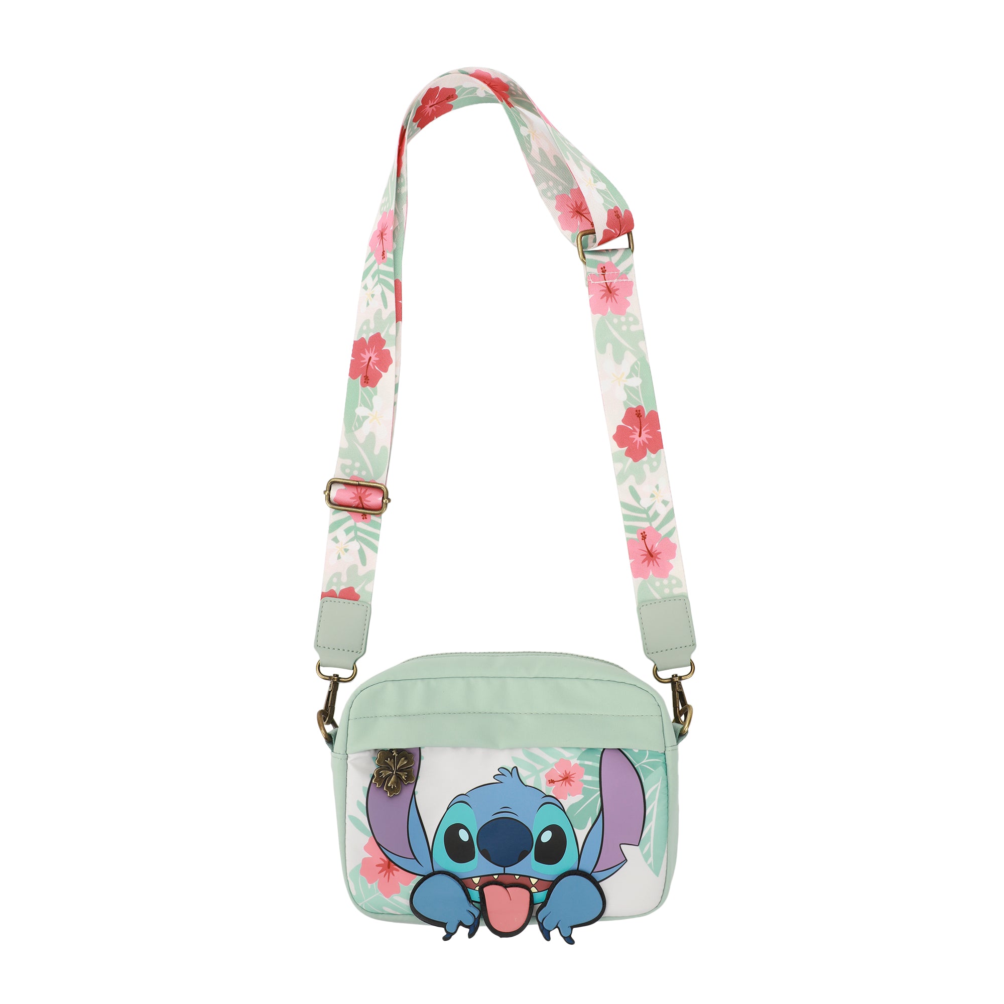 Disney Stitch Floral Print Green 7" Crossbody Bag