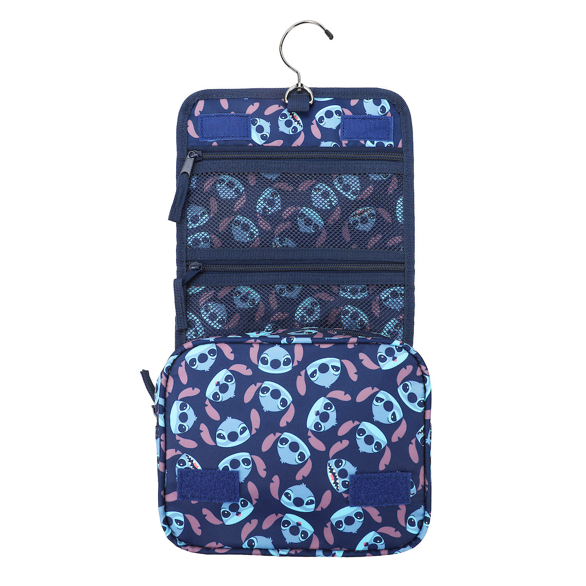 Disney Stitch Character Heads All-Over Print Blue 8.2" Folding Hanging Toiletry Kit