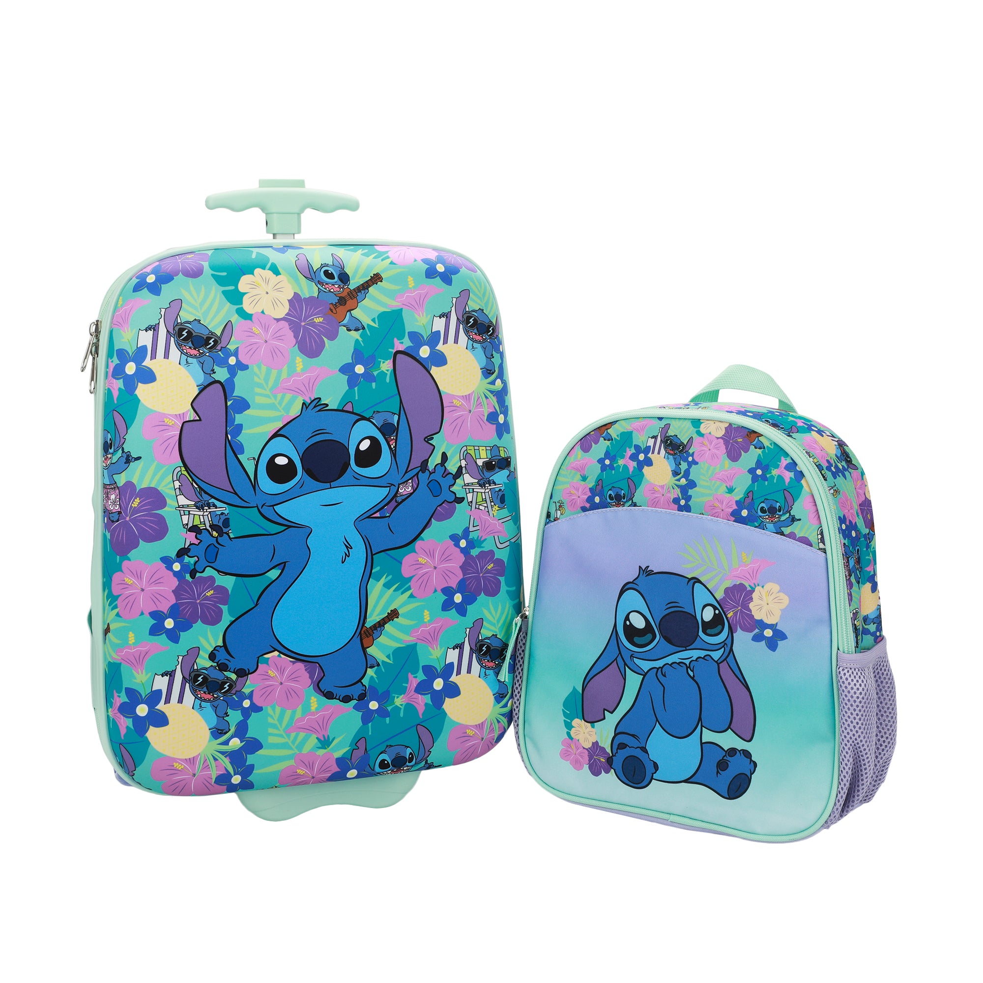 Disney Stitch Tropical Flower Print 2-Piece Youth EVA Wheeled Luggage & Travel Backpack Set