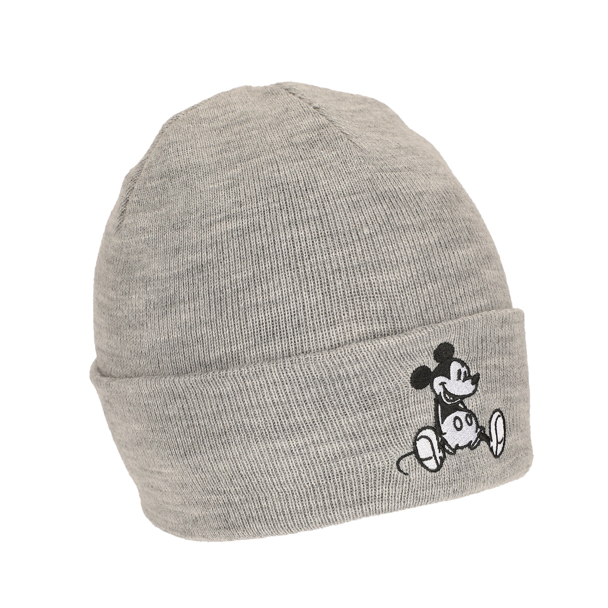 Mickey Mouse Mickey Embroidery Heather Gray Acrylic Knit Standard Cuff Beanie