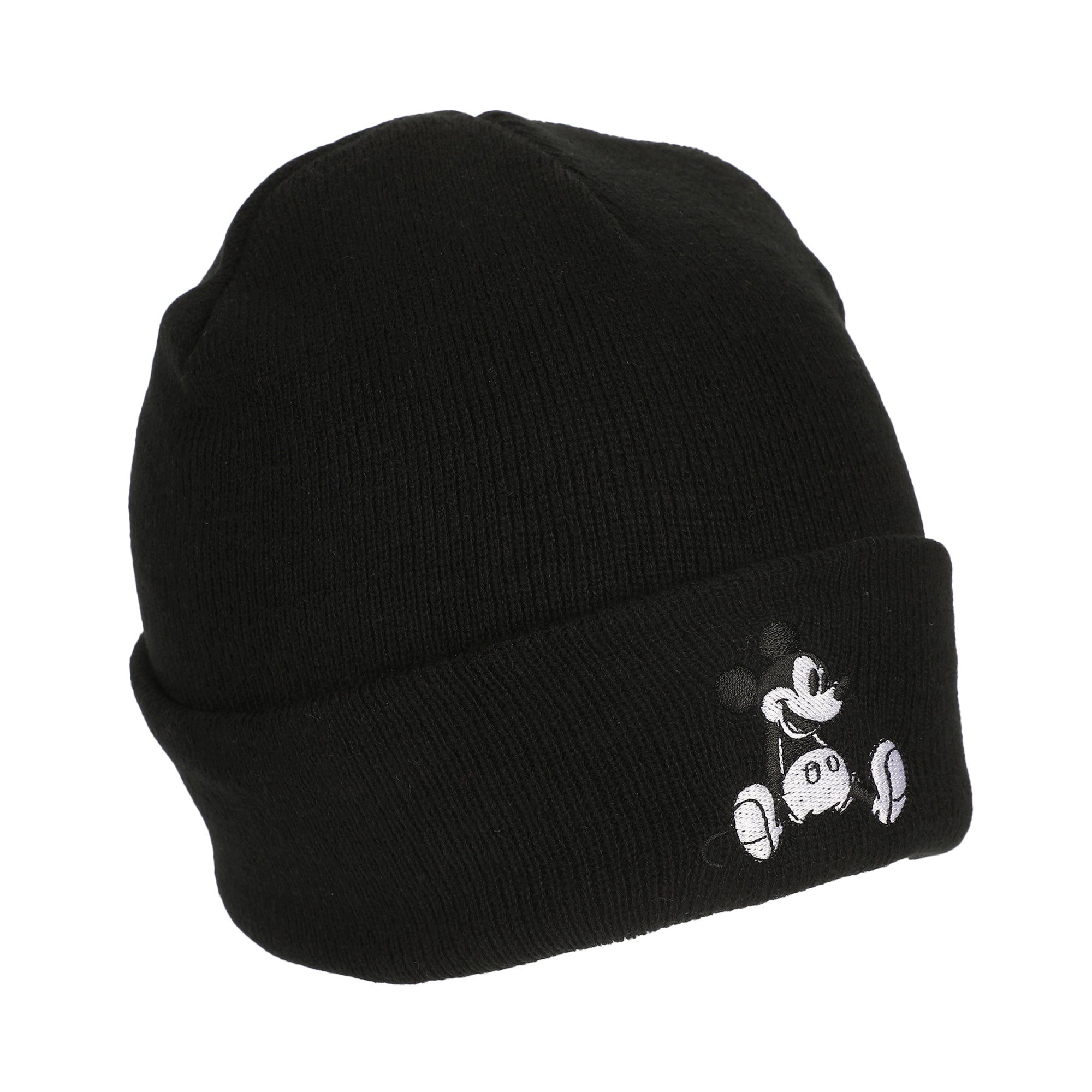 Mickey Mouse Mickey Embroidery Black Acrylic Knit Standard Cuff Beanie