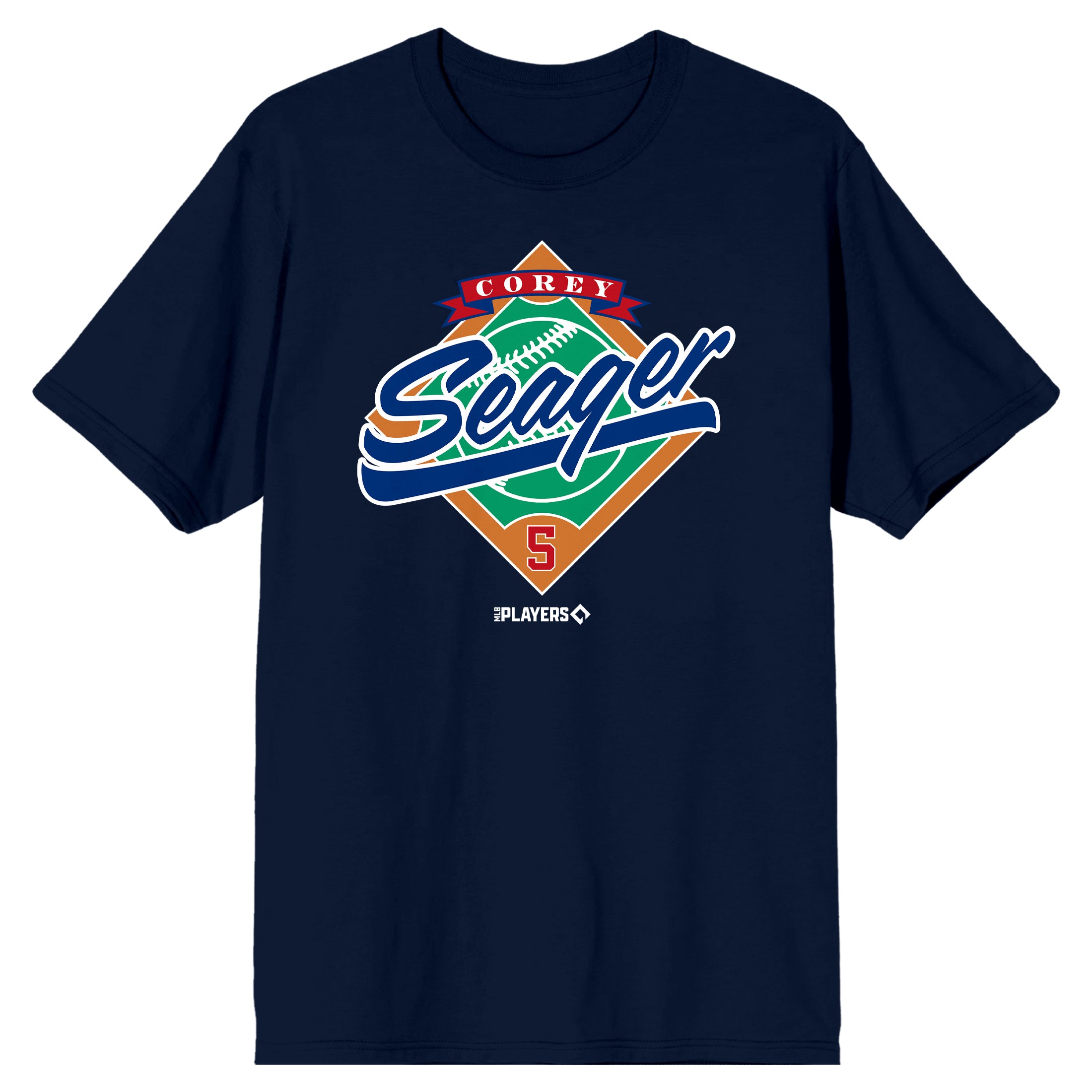 Corey Seager Baseball, Sports, Game, Ball and Base, American Professional Baseball Shortstop for the Texas Rangers, number 5 on Navy Adult T-Shirt