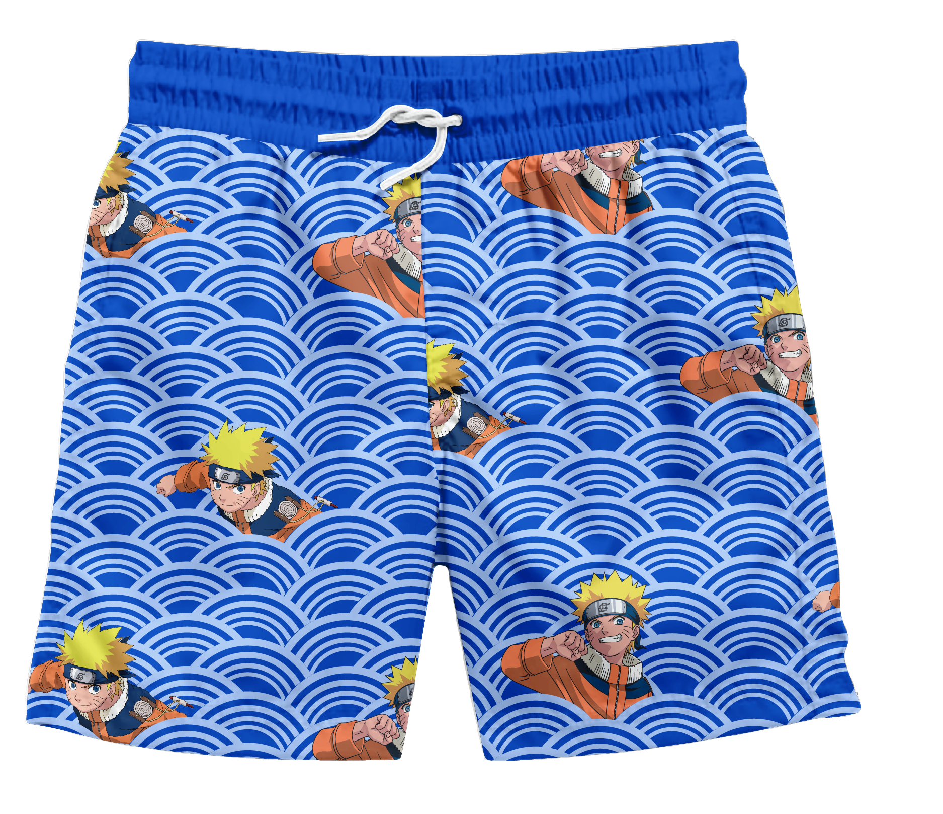 Naruto Character In Waves Boy's Blue Swim Trunks Shorts