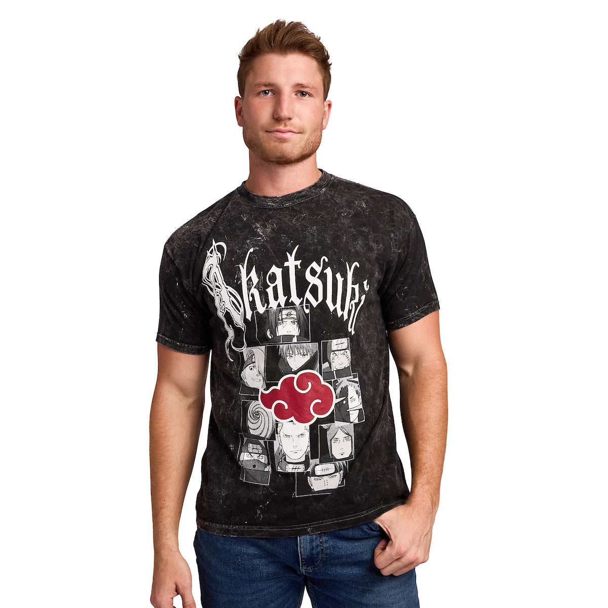 Naruto Shippuden Akatsuki Women's Black Mineral Wash Oversized Crew Neck Short Sleeve T-shirt