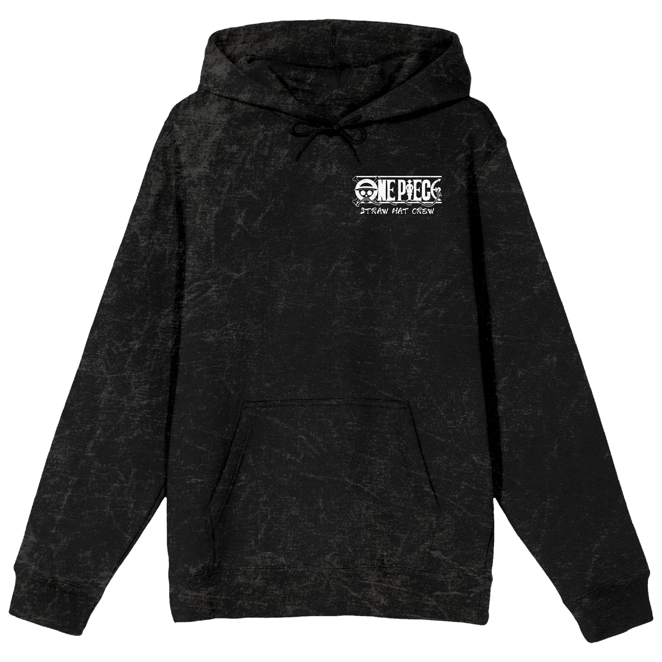 One Piece Animated Series Oversized Character Art Men's Black Mineral Wash Long Sleeve Hooded Sweatshirt