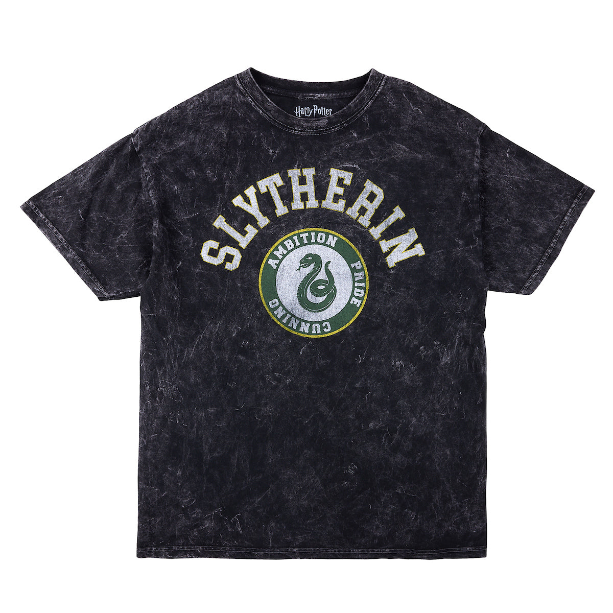 Harry Potter Slytherin Varsity Men's Gray Vintage Mineral Wash Crew Neck Short Sleeve T-shirt
