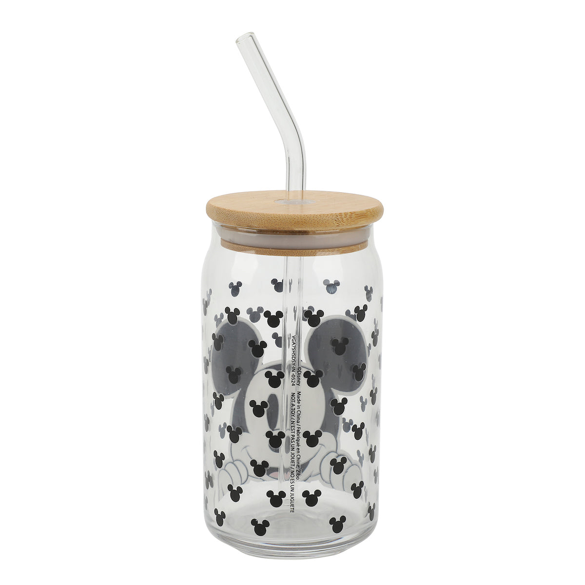 Disney Mickey Mouse Big Face 15 Oz Glass Bottle With Straw & Lid