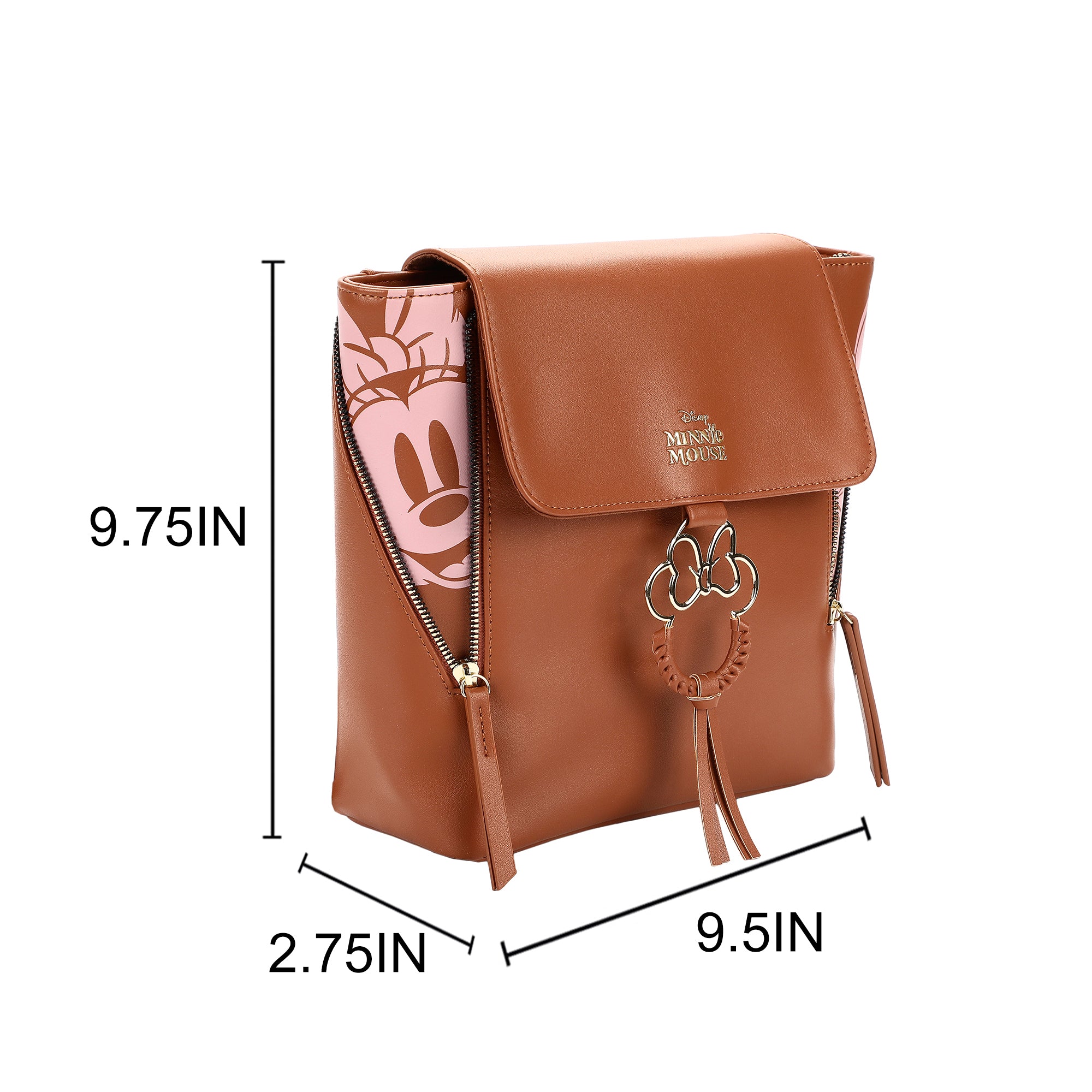 Disney Minnie Mouse Classic Faux Leather Mini Backpack with Bow Accent and Polka Dot Lining