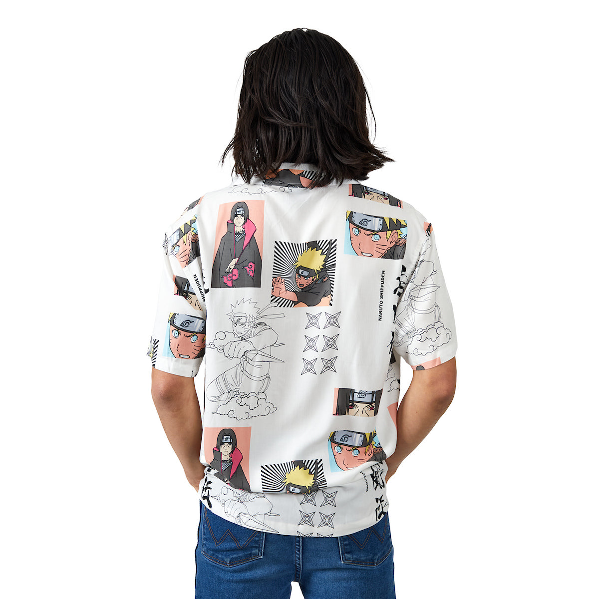 Naruto Anime Screenshots Shurikens & Character Line Art Short Sleeve Woven Button-Down Men's White Shirt