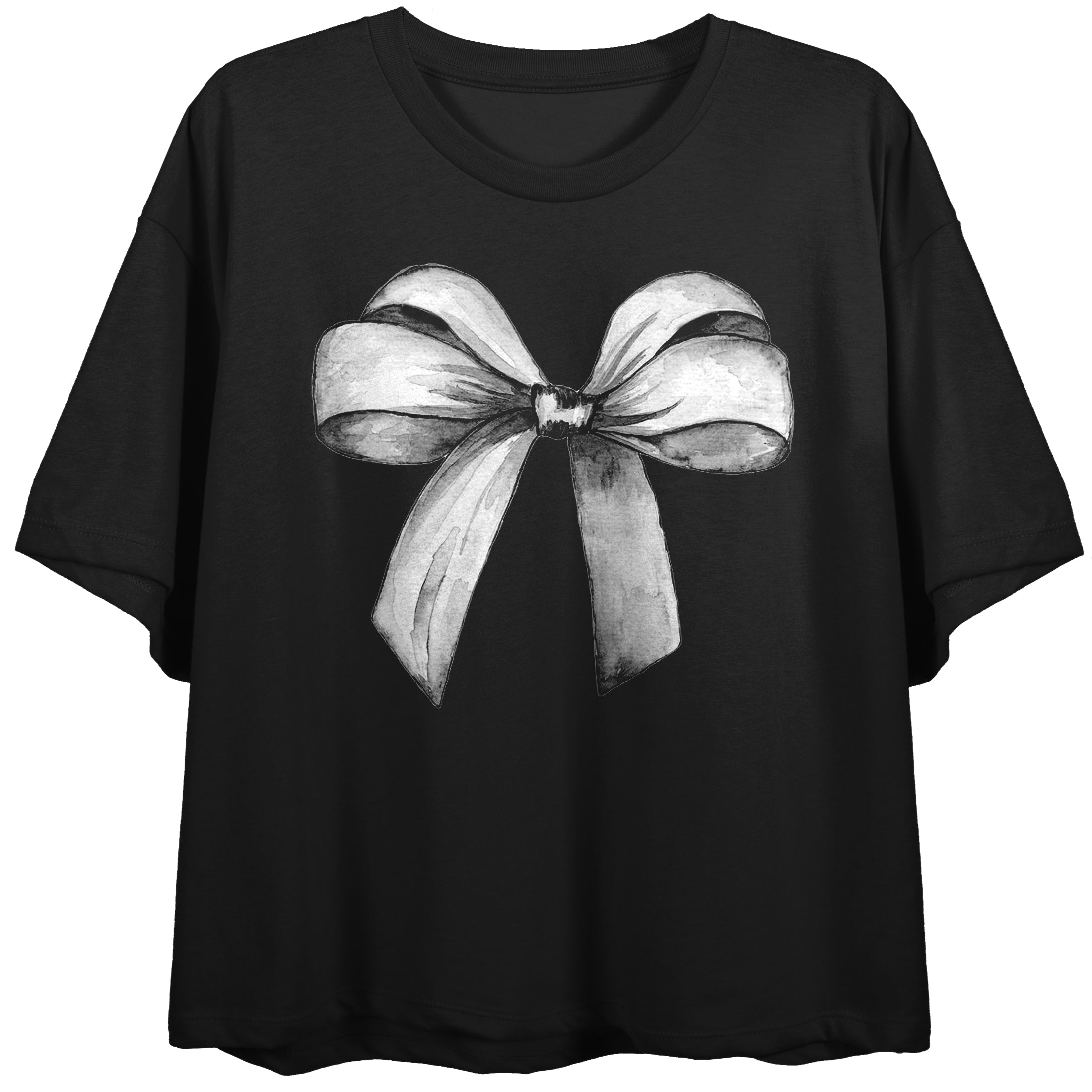 - CUSTOM DESIGN: Perfect for anyone who appreciates the aesthetically pleasing, this women's cropped tee has been custom-designed to feature a watercolor-style large white bow.