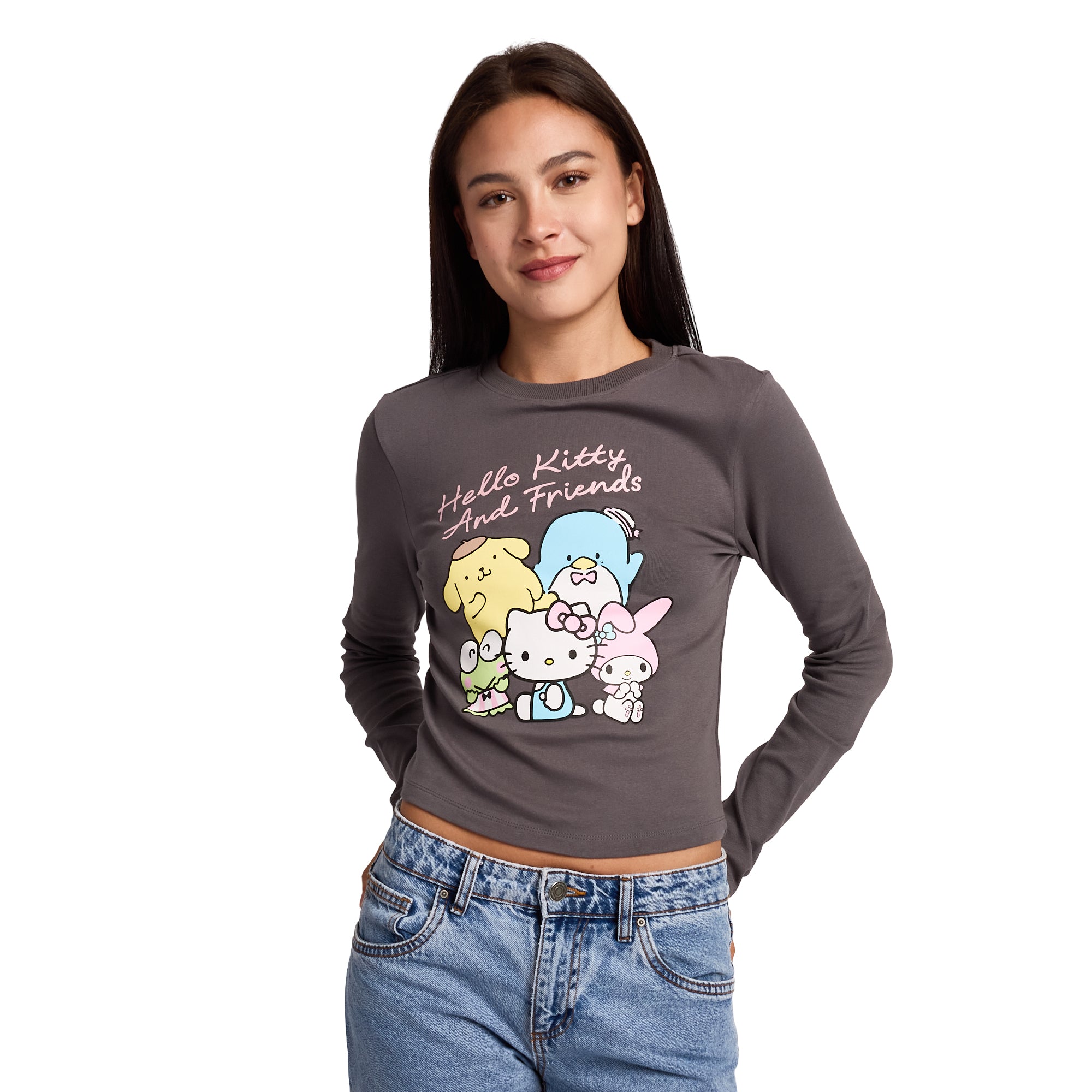 Hello Kitty & Friends Group Shot Women's Black Long Sleeve Baby Tee