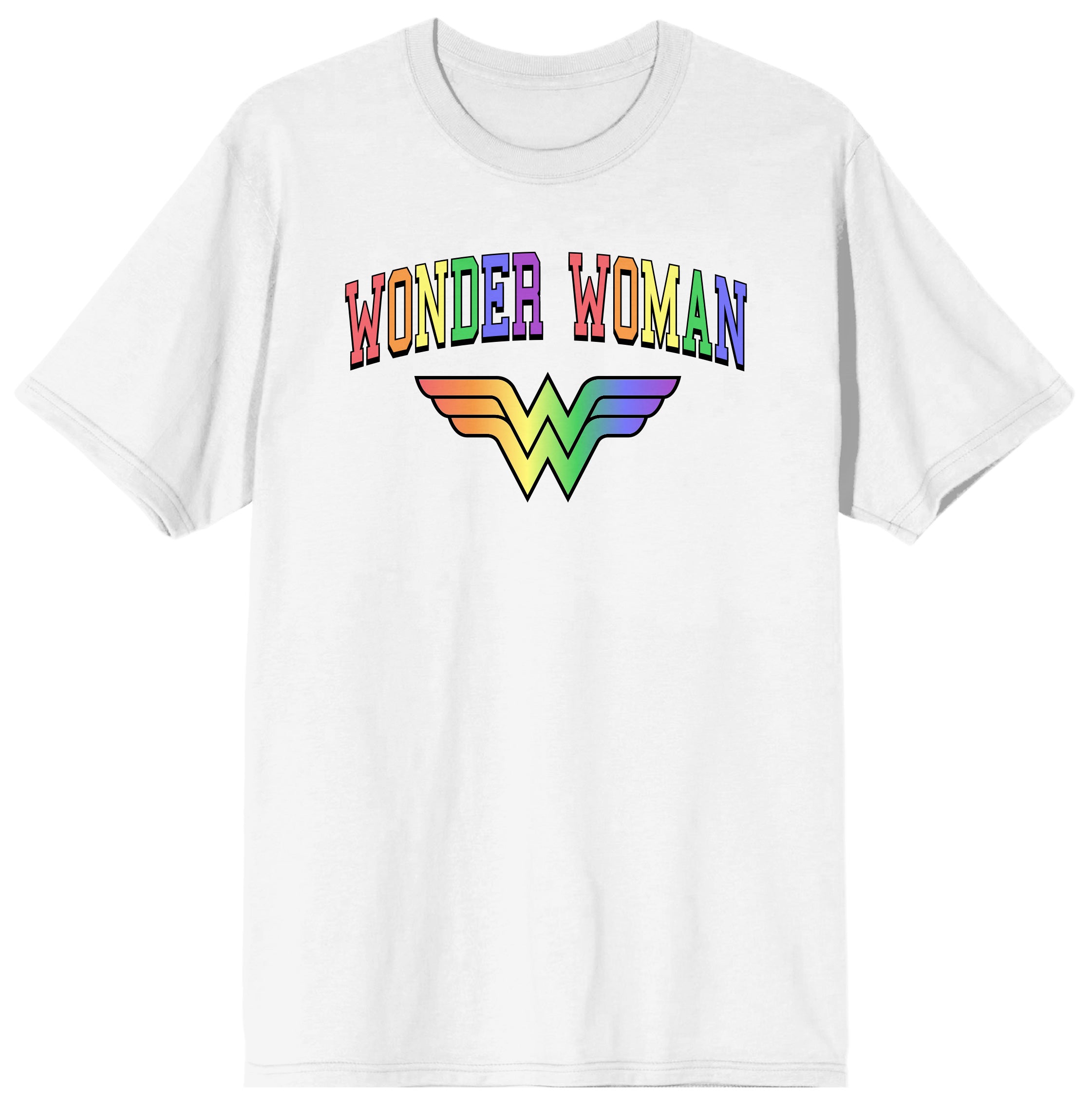 - SHORT SLEEVE - The DC comic book Wonder Woman rainbow logo unisex white graphic tee includes a short sleeve design that looks and feels great to wear in warm weather.