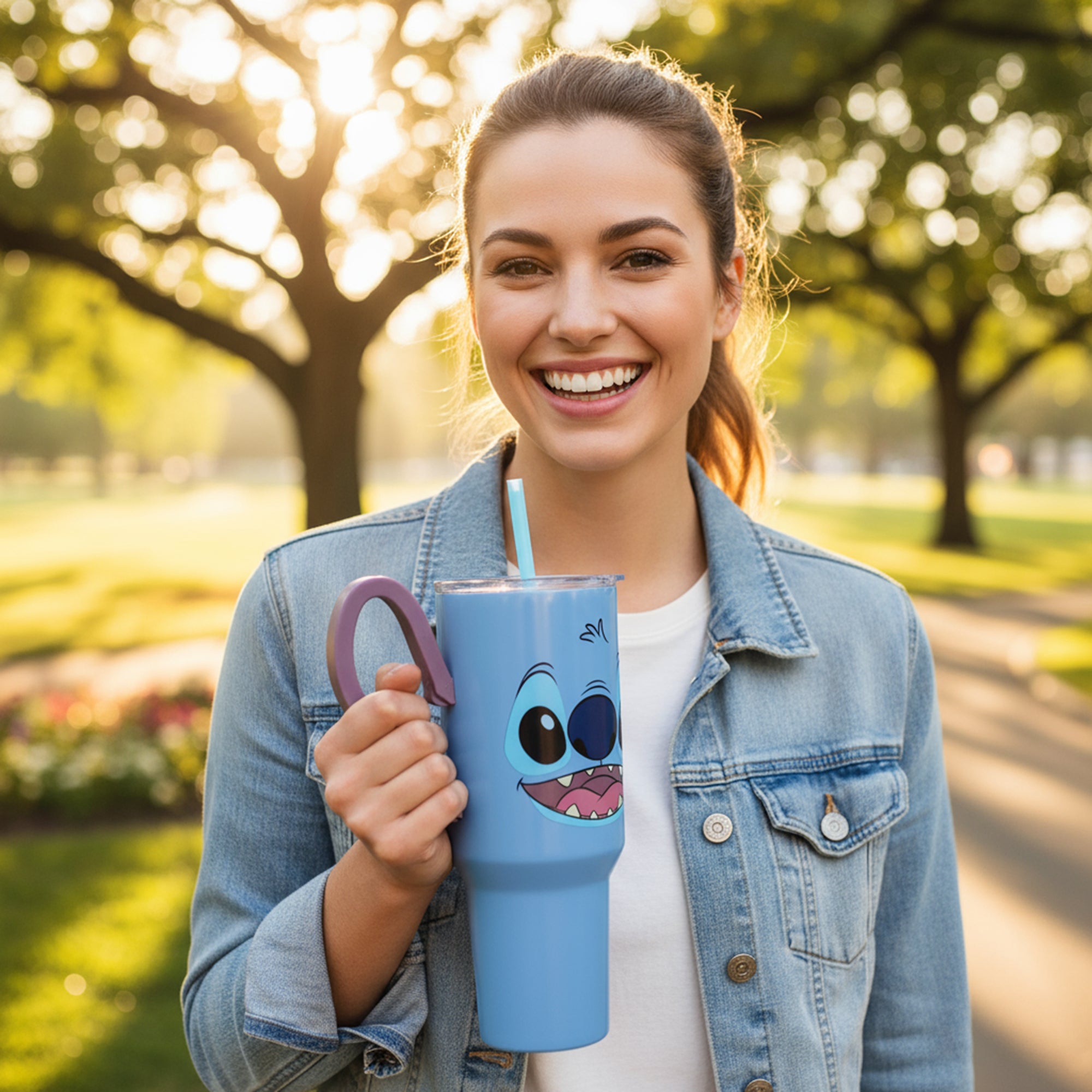 - Custom Character Design: Stay cool and hydrated with your favorite Disney character and this large tumbler that's been thoughtfully designed to look like Stitch, complete with an ear-shaped handle!