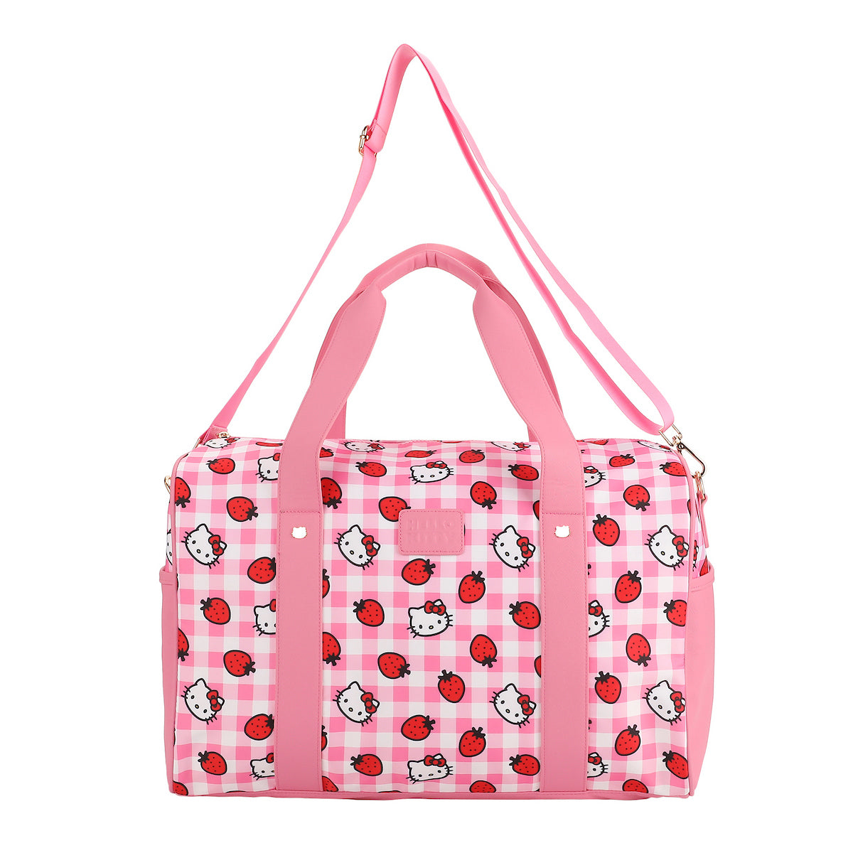 Hello Kitty Character & Strawberries All-Over Print Pink Plaid 20" Duffel Bag