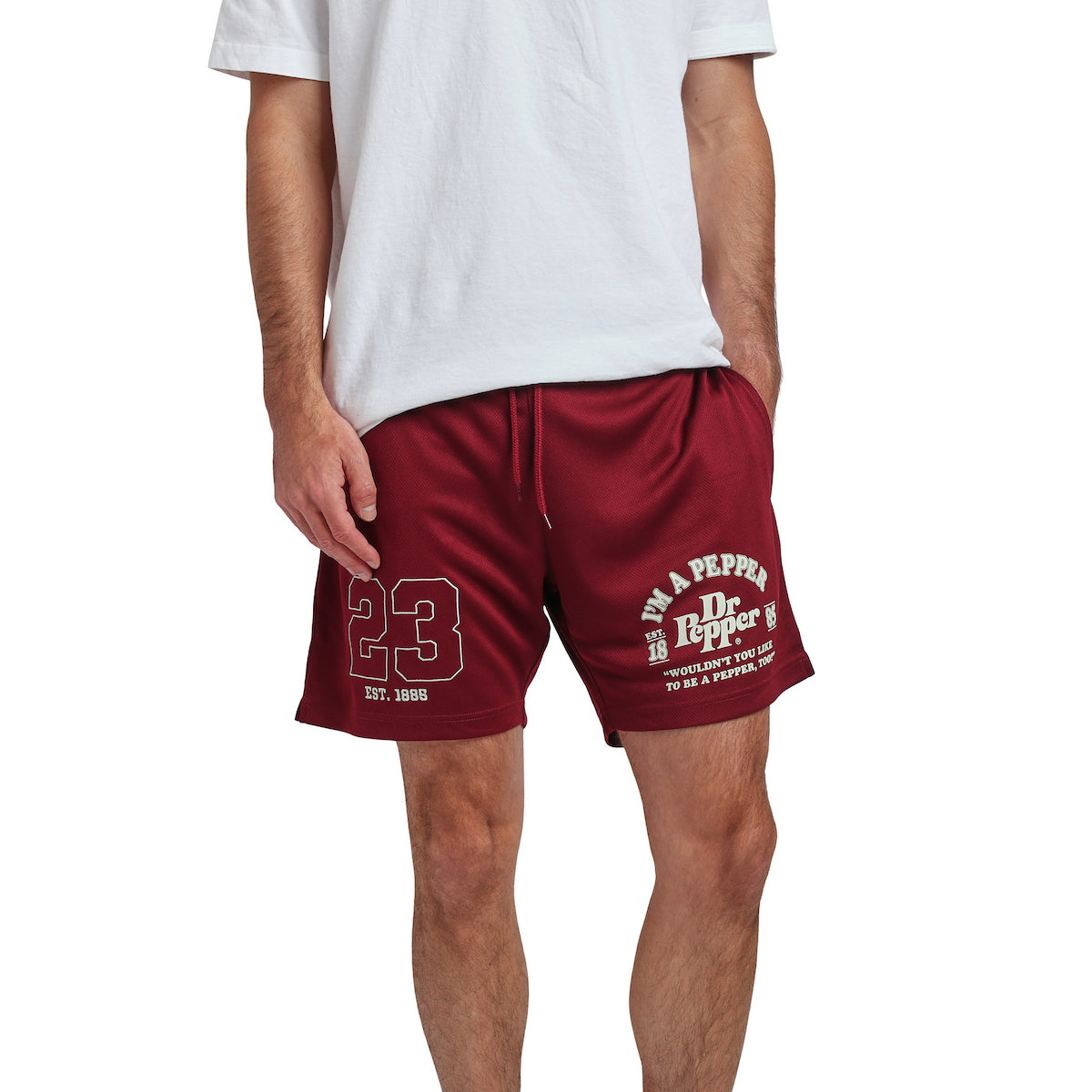 - Custom Design: Dr Pepper’s classic logo and jingle “Wouldn’t You Like To Be A Pepper, Too?” has been professionally printed on the shorts’ left leg, while the right boasts number “23” (an ode the soda’s 23 spices) and “Est. 1885.”