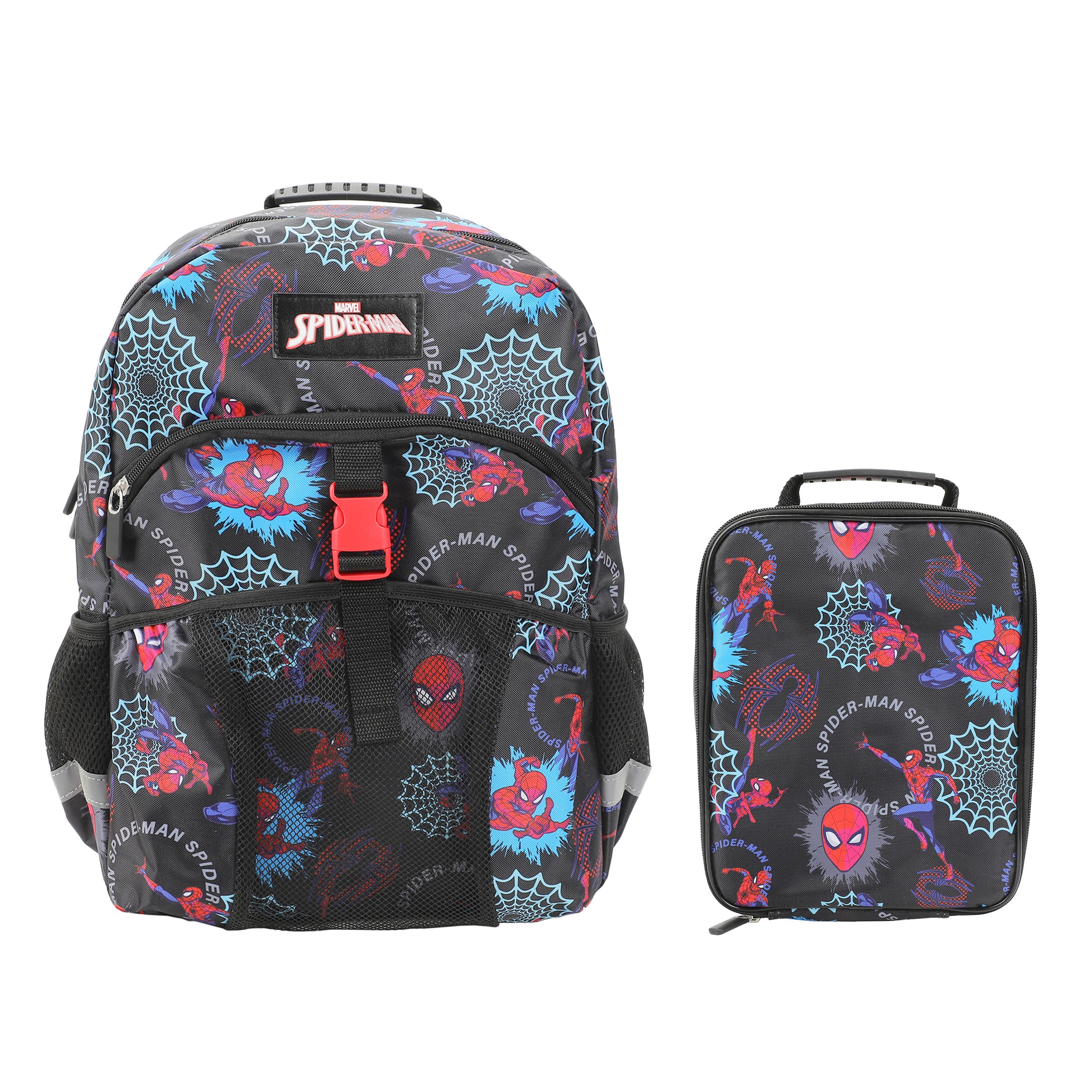 Spider-Man Superhero & Webs 16" Premium Backpack & Lunch Kit Set for Boys