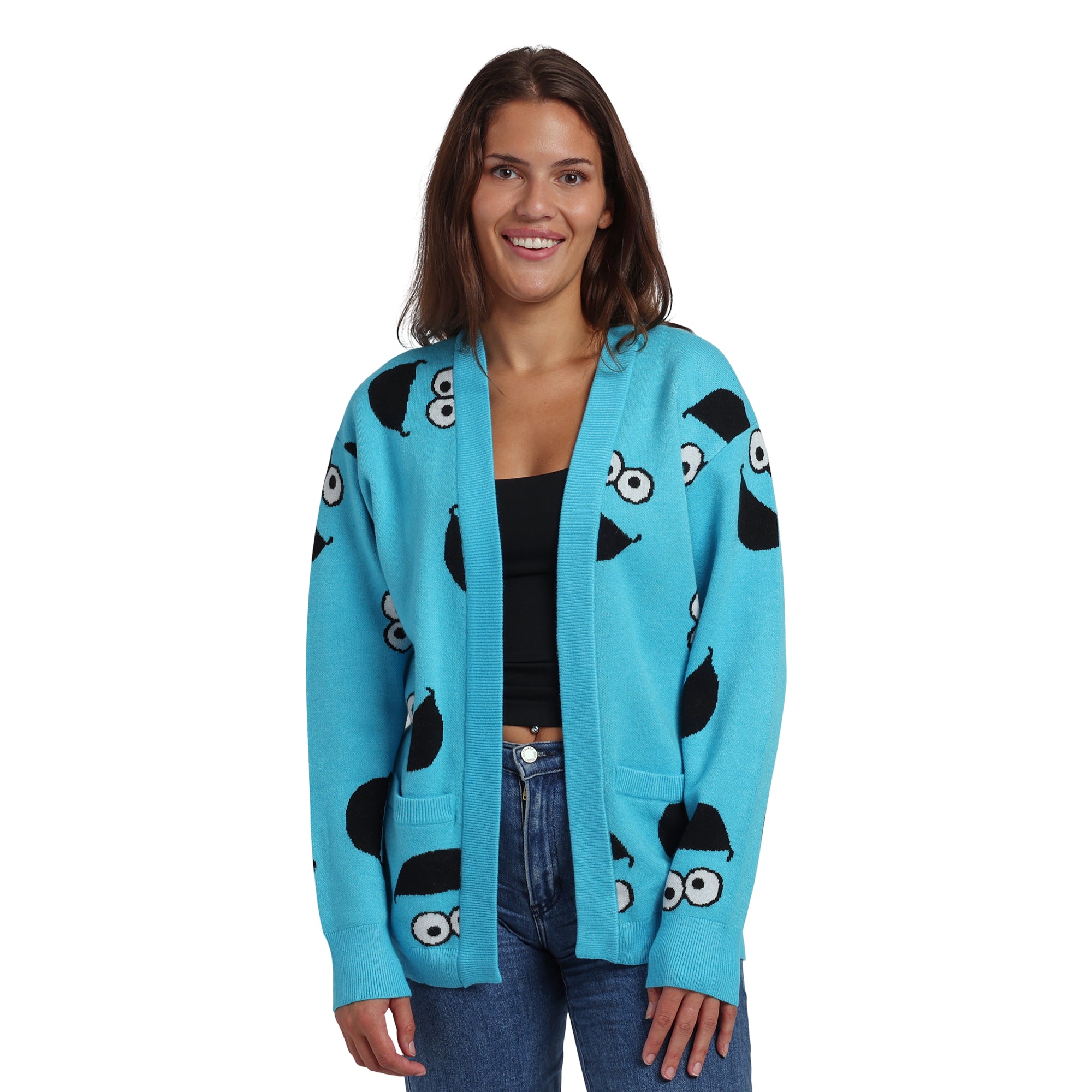 Sesame Street Cookie Monster All-Over Print Women's Blue Long Sleeve Cardigan