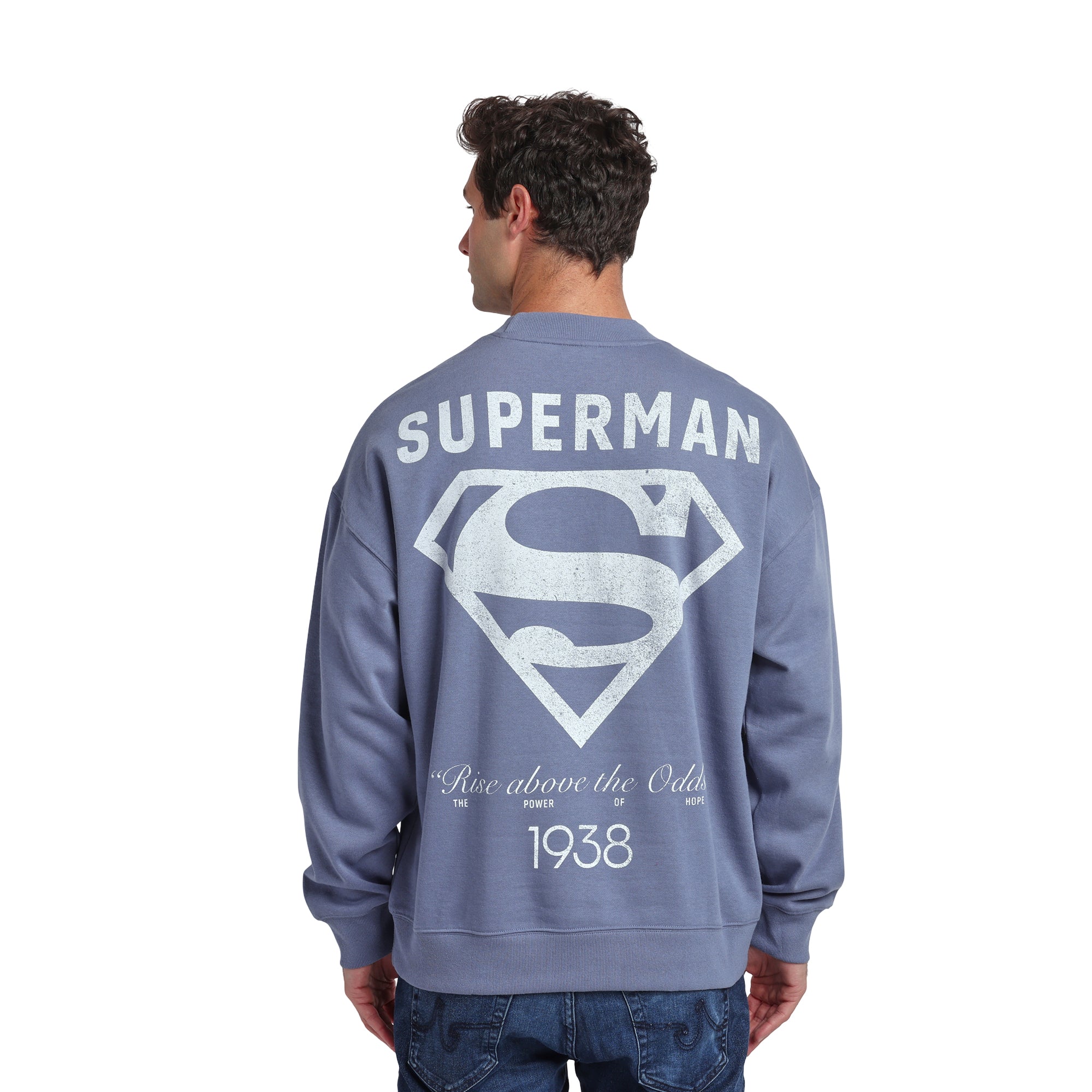 Superman 1938 Men’s Blue-Gray Crew Neck Sweatshirt